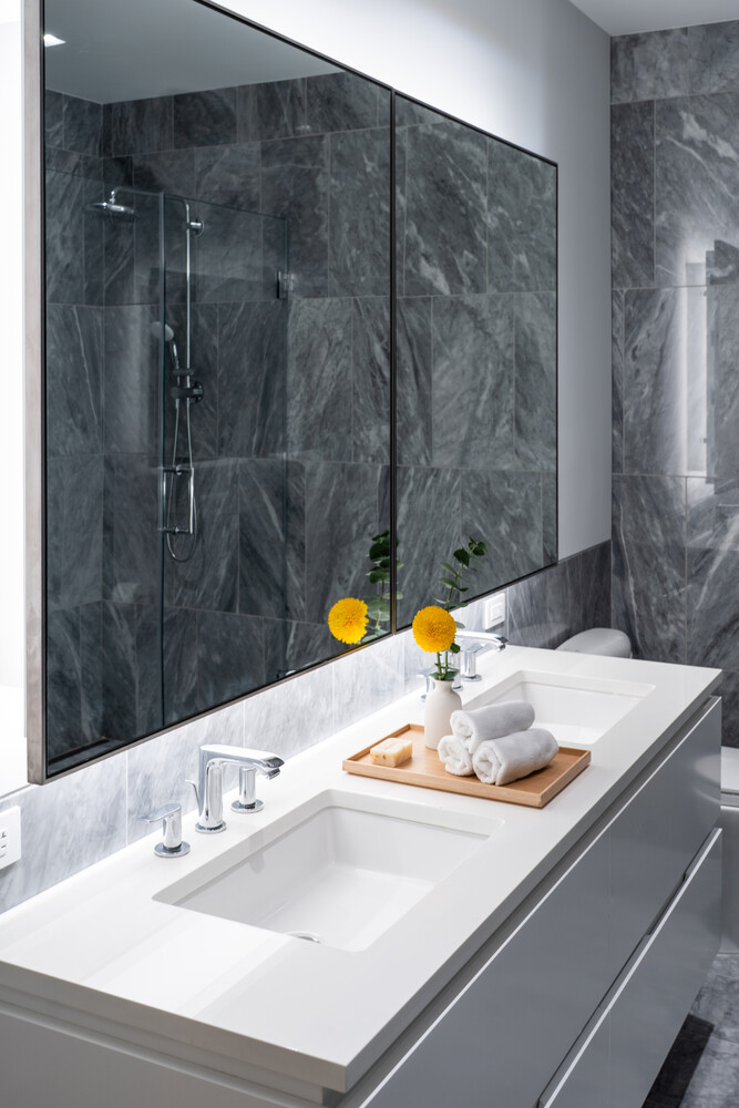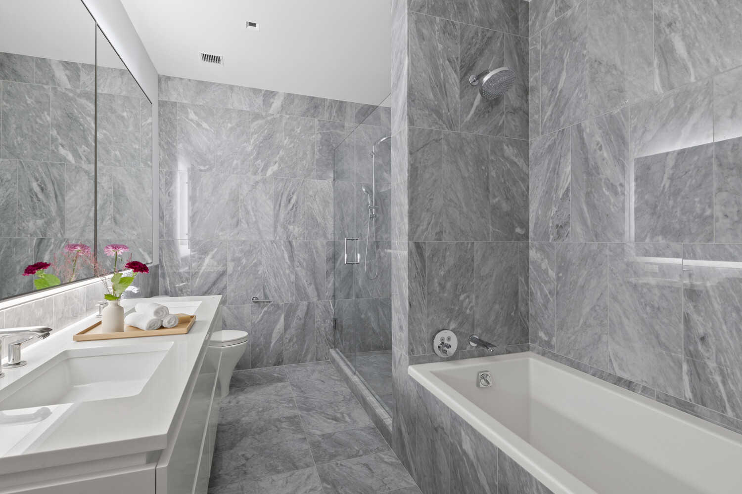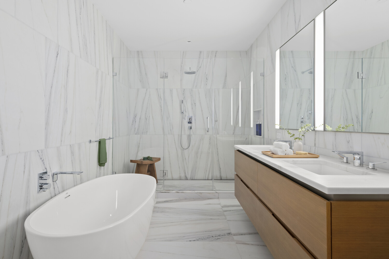 The bathrooms are a standout feature, offering a scale and finish rarely found at this price point. Oversized and spa-caliber, they include double vanities, Calacatta Lincoln marble, and upgraded fixtures throughout, creating a true sense of comfort and luxury.