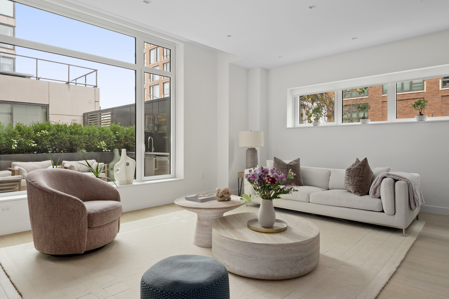 Set within one of Tribeca's most coveted waterfront enclaves, this rare townhouse-style residence offers serene, private living just moments from Hudson River Park's leafy paths and sunset promenades. Tucked along a quiet, residential stretch, it combines the warmth of a neighborhood block with the ease and sophistication of a full-service luxury building, newly reimagined by Related with a landscaped arrival courtyard and attentive white-glove staff.
