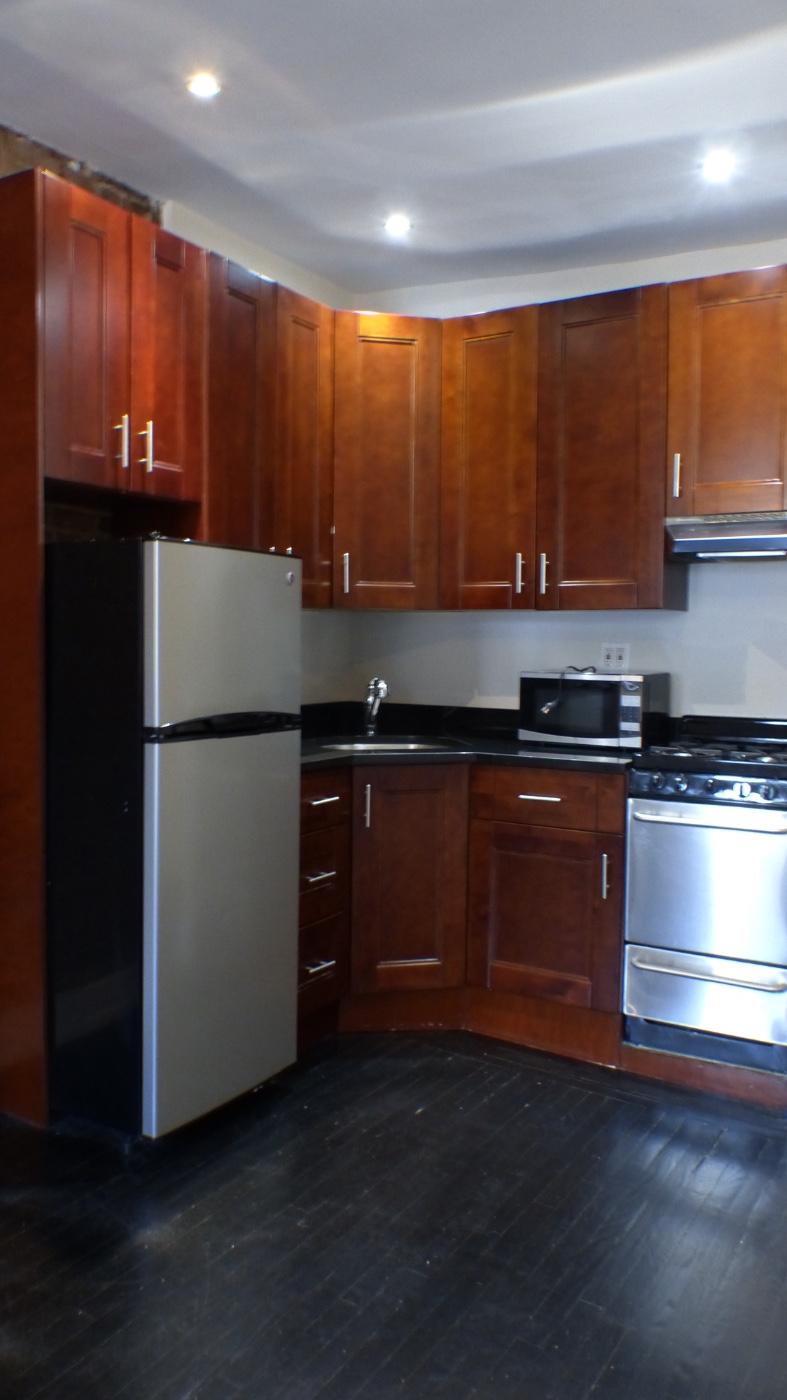 Very spacious and newly renovated studio. Large living space features exposed brick, faux fireplace, newly renovated kitchen, with stainless steel appliances and cherry cabinetry.