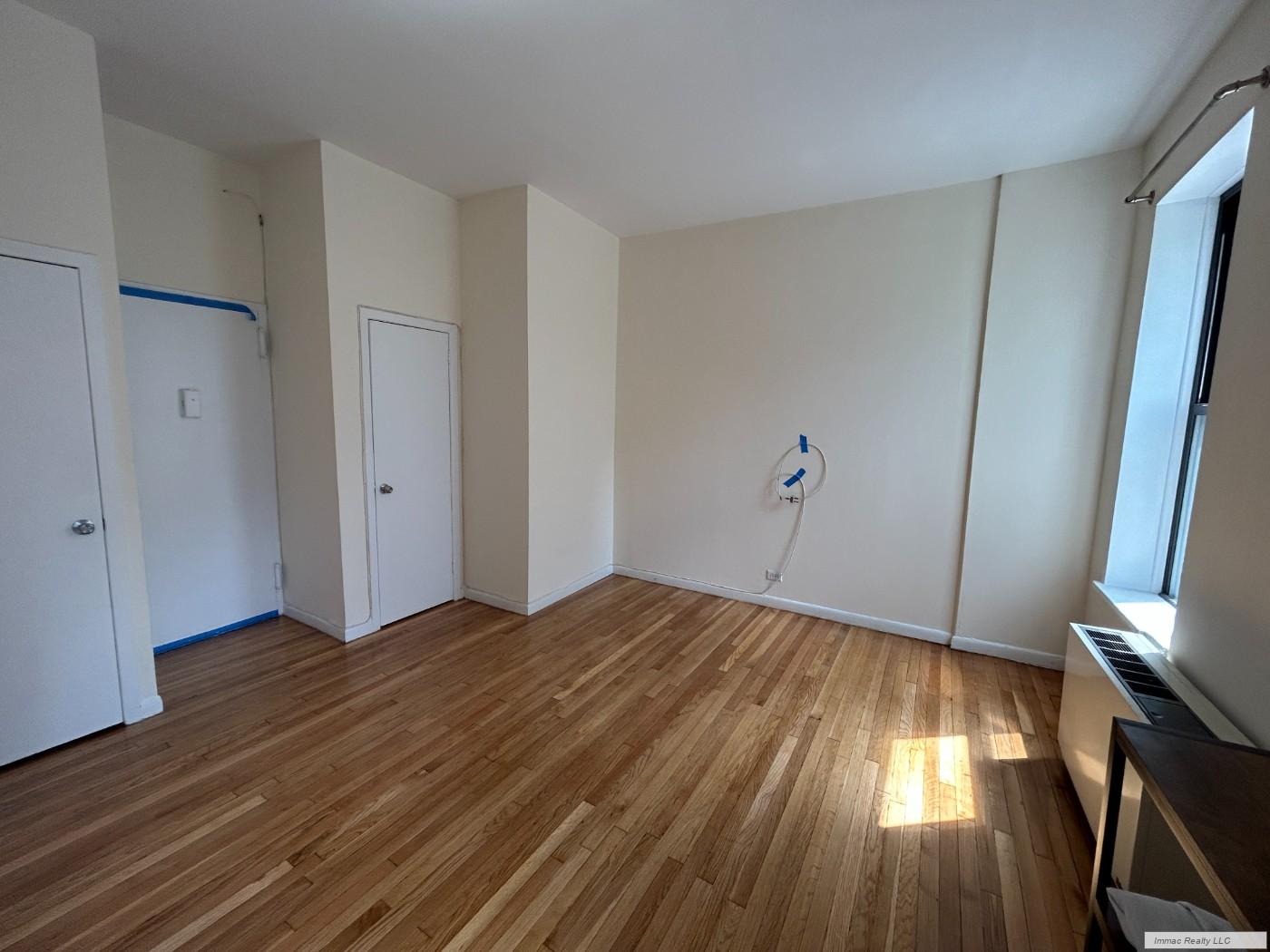 This studio has a great living room with high ceilings and 3 closets!! Super clean, hardwood floors throughout