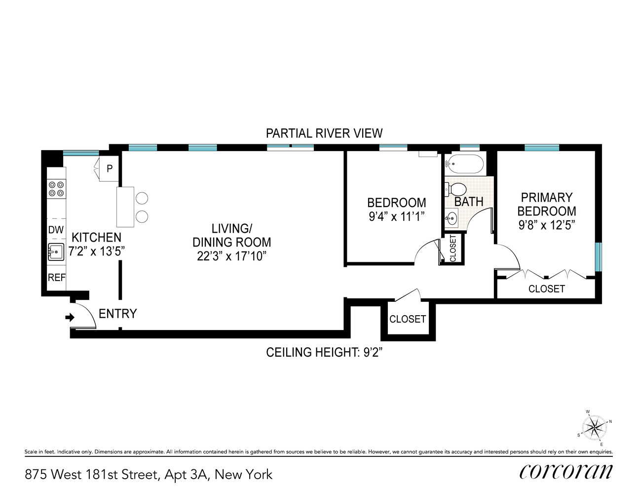 Spacious and loft-like, this west-facing two-bedroom co-op offers partial Hudson River views and an inviting open layout designed for comfortable living and effortless entertaining. Three oversize windows bring light into the expansive great room, creating a warm and airy atmosphere perfect for relaxing or hosting guests.