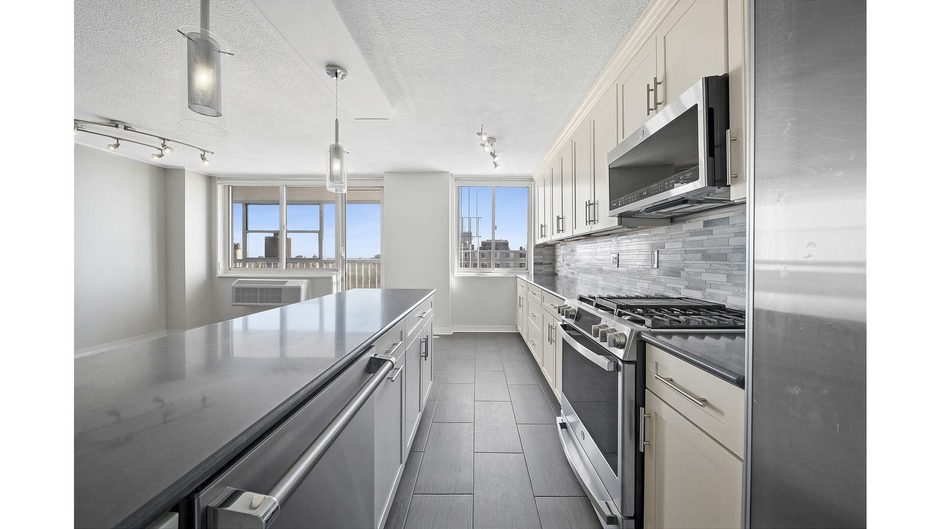 Perched atop the desirable Park Lane North building, this exceptional 3-bedroom, 2.5-bath penthouse represents a rare opportunity to experience truly elevated living in the heart of Forest Hills. A gracious entry foyer with expansive custom closets sets a sophisticated tone, seamlessly unfolding into an impressive living and dining expanse designed for both grand-scale entertaining and refined everyday living.