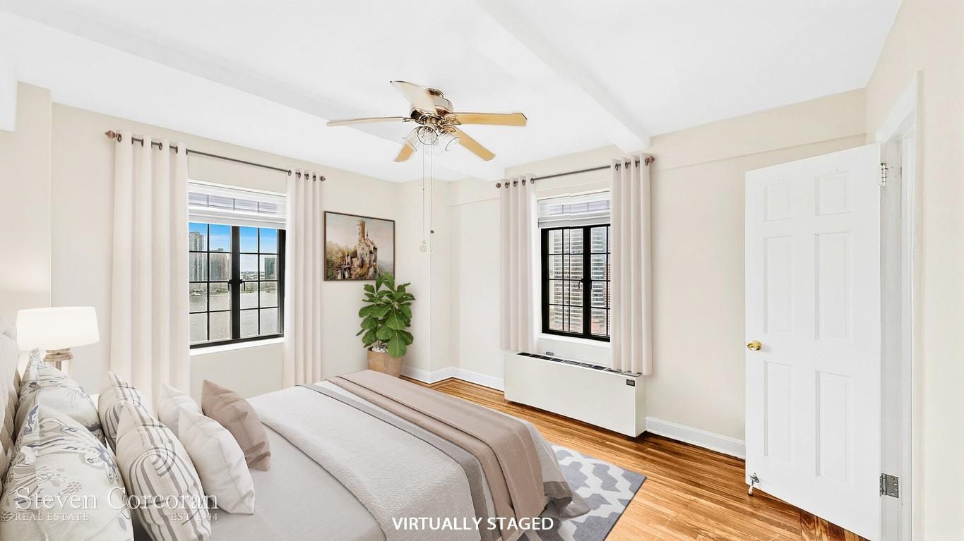 This lovely one-bedroom apartment features an eastern exposure, with all windows offering an exceptional river view, a rare find in New York.