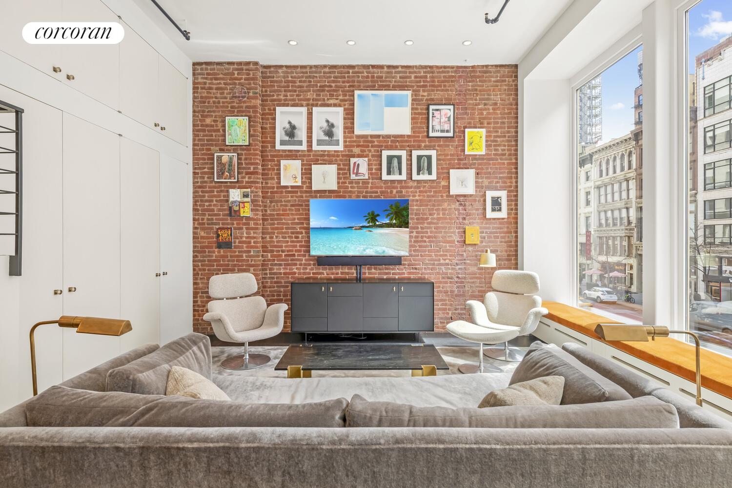 Bathed in sunshine from massive 10-foot windows, this dramatic residence features soaring 14-foot ceilings, original timber beams, steel columns, and exposed brick-creating a striking backdrop for one-of-a-kind loft living that looks out onto the stunning historic architecture of the neighborhood. A key-locked elevator opens directly into the home, revealing an expansive 42-foot-wide entertaining space where multiple living areas flow effortlessly into an elegant dining and culinary hub.