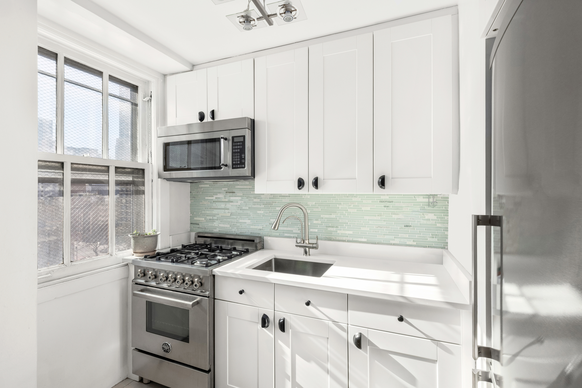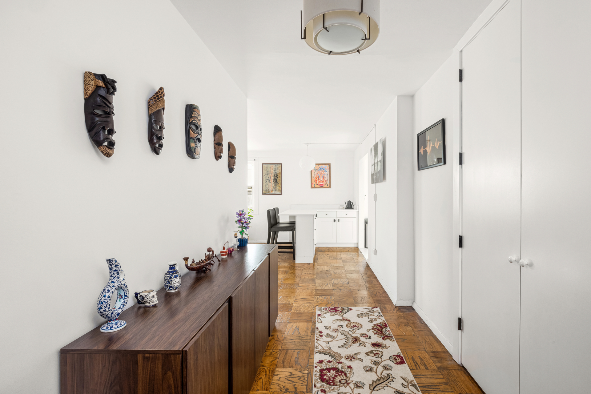 Residence 9B is a bright, high-floor corner one-bedroom featuring a beautifully renovated kitchen and an airy, sun-filled layout with open city views. Natural light pours in through dual exposures, creating a warm and inviting feel throughout the home.