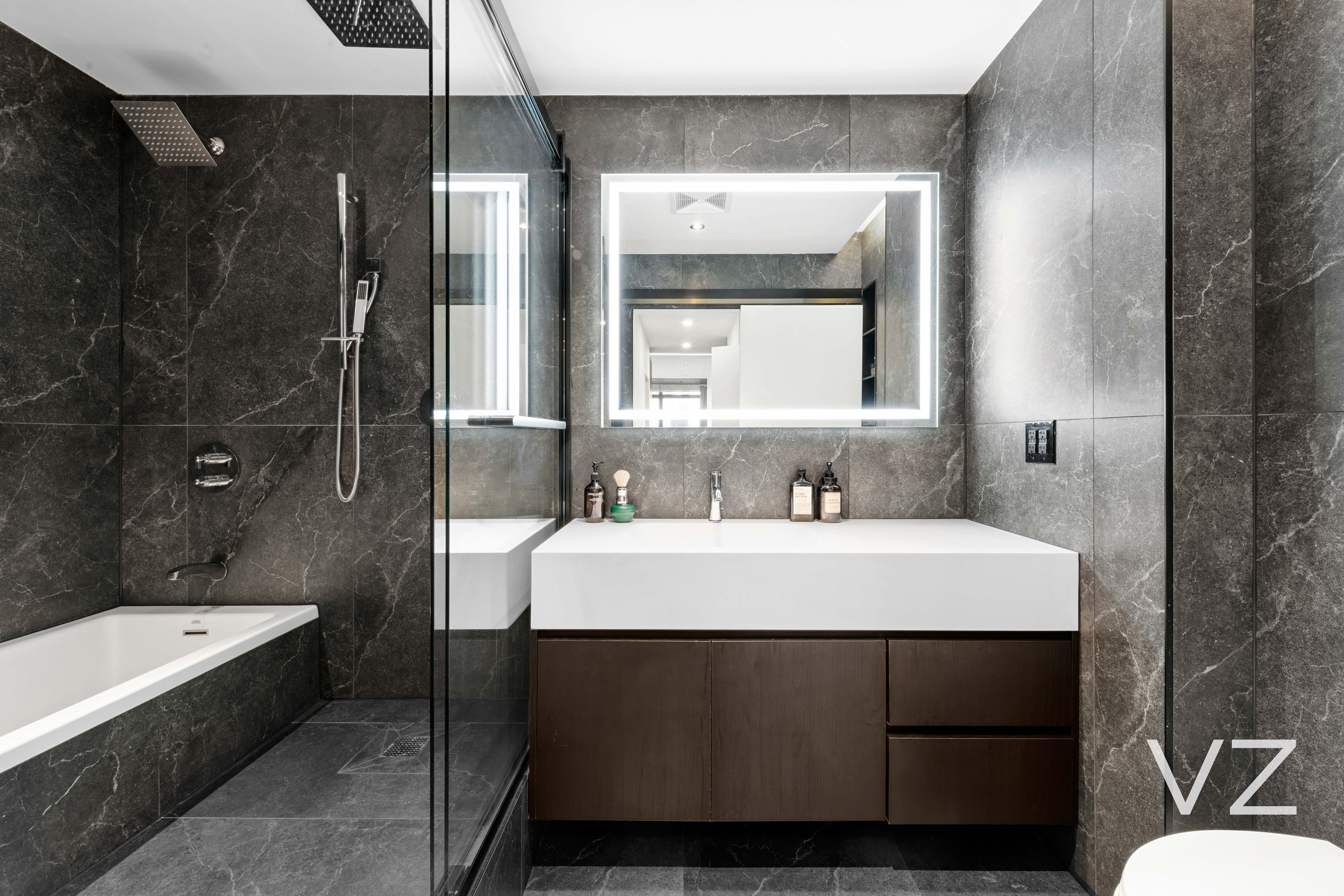 • Welcome to Residence 41E at 721 Fifth Avenue — the iconic Trump Tower, perfectly positioned on Manhattan’s most prestigious stretch of Fifth Avenue. Located just one minute from Central Park South, this address places you at the epicenter of global luxury — surrounded by landmarks such as Bergdorf Goodman, The Plaza Hotel, Aman New York, and flagship boutiques including Louis Vuitton and the world’s most renowned watch and jewelry maisons. This is, without question, one of the most coveted locations in Manhattan. This expansive 1-bedroom, 1.5-bath residence spans approximately 1,125 square feet, offering proportions rarely found in a one-bedroom — comparable in scale to many two-bedroom homes. The apartment enjoys unobstructed, direct views of Central Park, delivering a truly iconic New York living experience. The residence has been fully gut-renovated to an exceptional standard, originally designed for the owner’s personal use. Every detail reflects a commitment to quality, comfort, and modern design. Features include: Wide-plank White Oak flooring throughout A fully integrated smart home system for lighting, climate, and ambiance Custom millwork and refined wood paneling creating a warm, architectural interior A sleek, built-in fireplace anchoring the living space A dedicated workstation/home office area, seamlessly integrated into the layout The spa-inspired bathrooms are finished with premium natural stone and include: A deep soaking tub Separate wet and dry areas TOTO smart toilet The kitchen has been completely reimagined with a custom layout and features: A central island ideal for both dining and entertaining Fully integrated Miele appliances Exterior-vented range hood Garbage disposal In-unit Miele washer and dryer This residence stands apart from all other one-bedroom units in the building — offering a true turnkey, newly renovated living experience in a location that defines Manhattan luxury.
