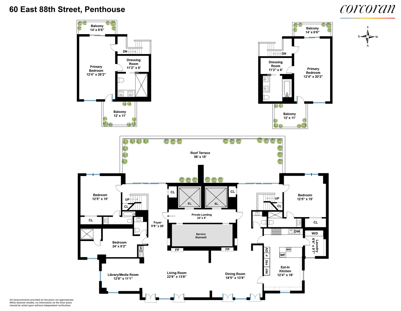 Experience the serenity of soaring heights and four exposures, with North and South as the two primary. Setbacks at this height optimize light and effectively neutralize noise, even as the Penthouse stretches across the building's full width.