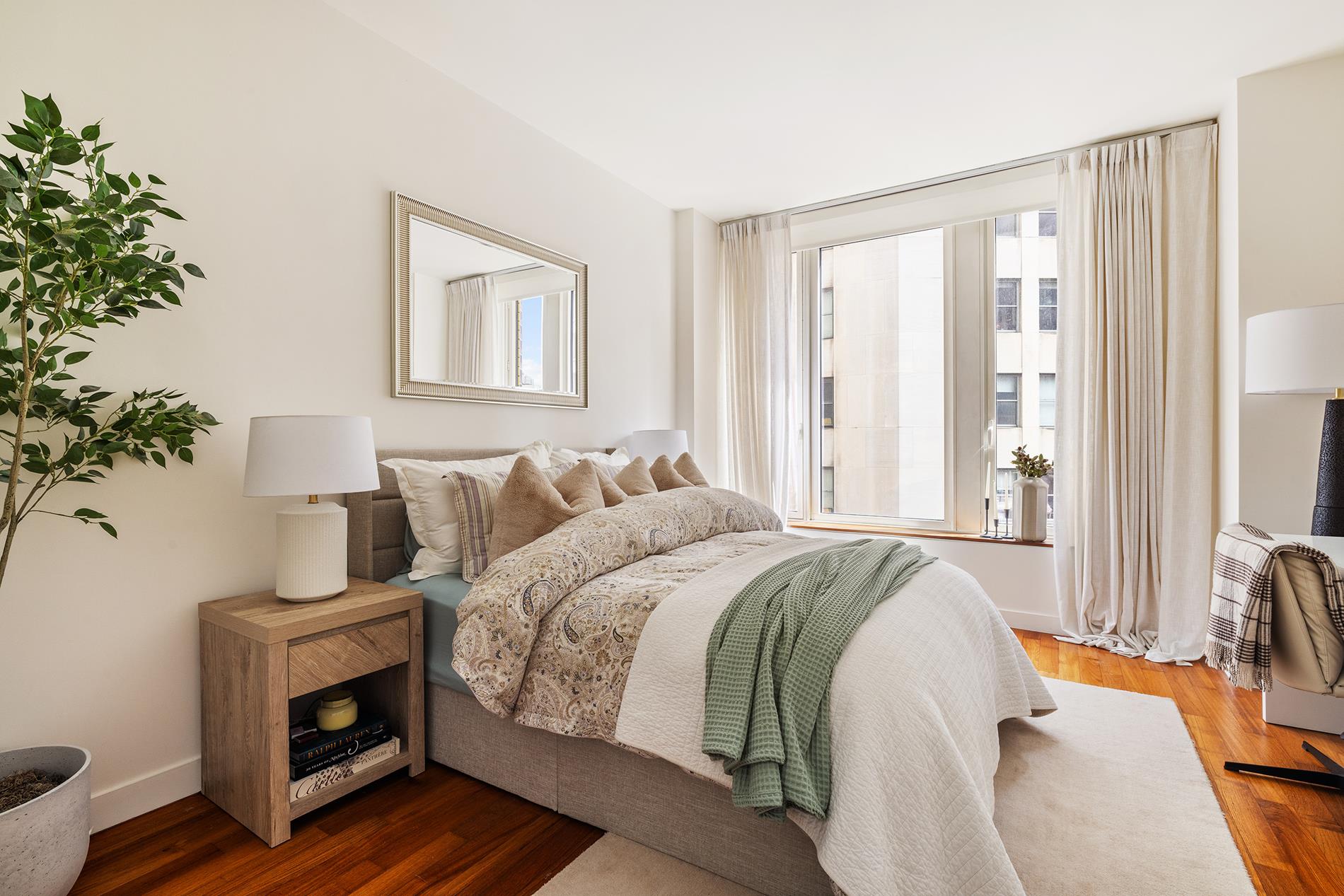 Residence 14E at 15 William Street is a spacious and light-filled two-bedroom, two-bath home in one of Downtown Manhattan’s premier full-service condominiums.