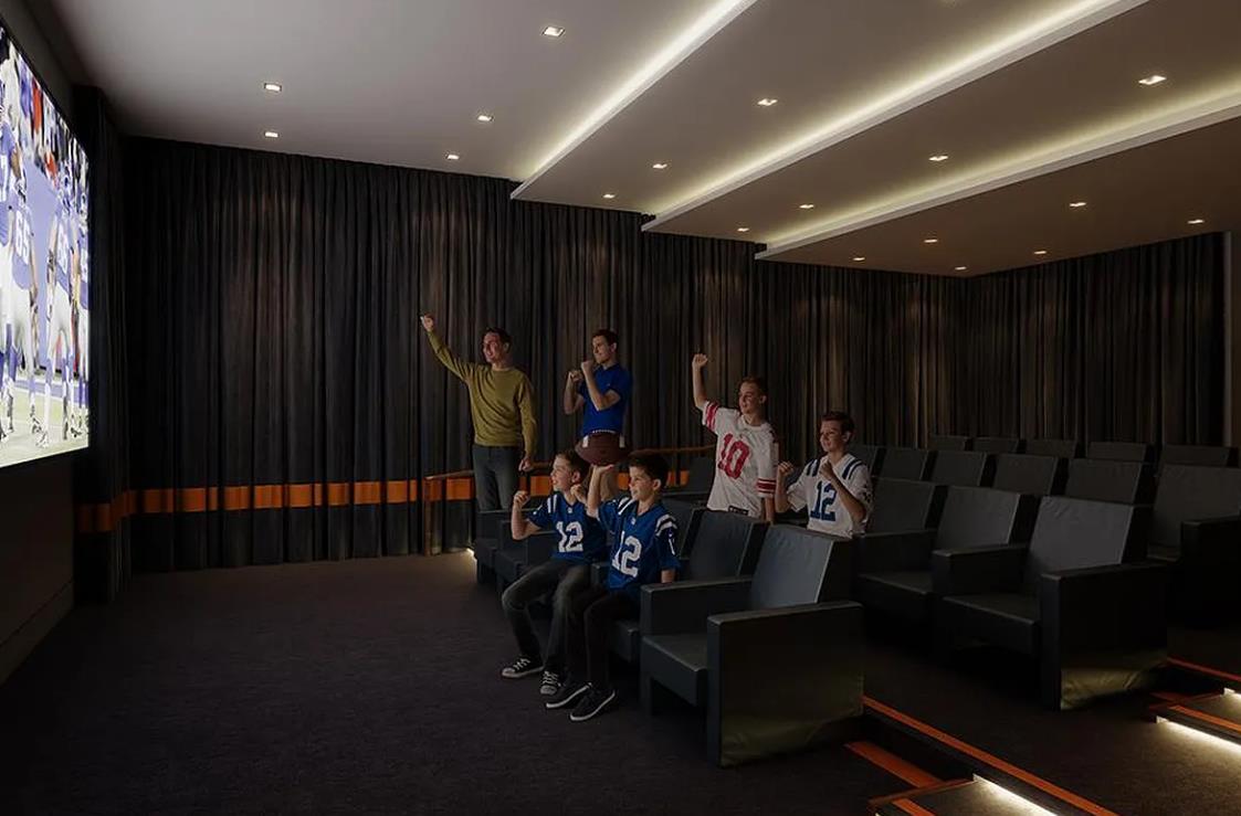 Residents of One Riverside Park enjoy over 50,000 SF of world-class amenities, including LA PALESTRA athletic club and spa, a 75-foot swimming pool, rock-climbing wall, basketball and squash courts, bowling alley, golf simulator, and more. The building also offers a private screening room, residents lounge, landscaped courtyard, children’s playroom, and event spaces with catering kitchen.