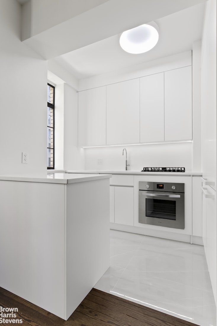 The fully renovated kitchen has a window as well as extra preparation counter space and designer appliances.