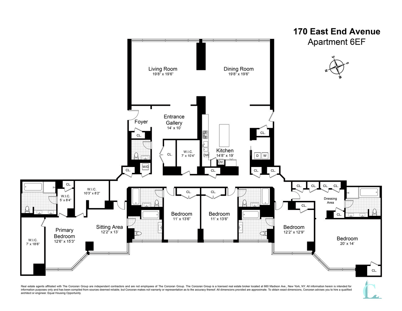 This spacious and stunning apartment in Peter Marino's distinguished 170 East End Avenue condominium occupies a foot print equal to two three-bedroom apartments on other levels. The entire front of the apartment overlooking Carl Shultz Park is large scale entertaining rooms with 10 foot ceilings. The verdant outlook, bright sun, and chic finishes create a residence that is both sophisticated and warmly inviting - ideal for both elegant entertaining and everyday living.