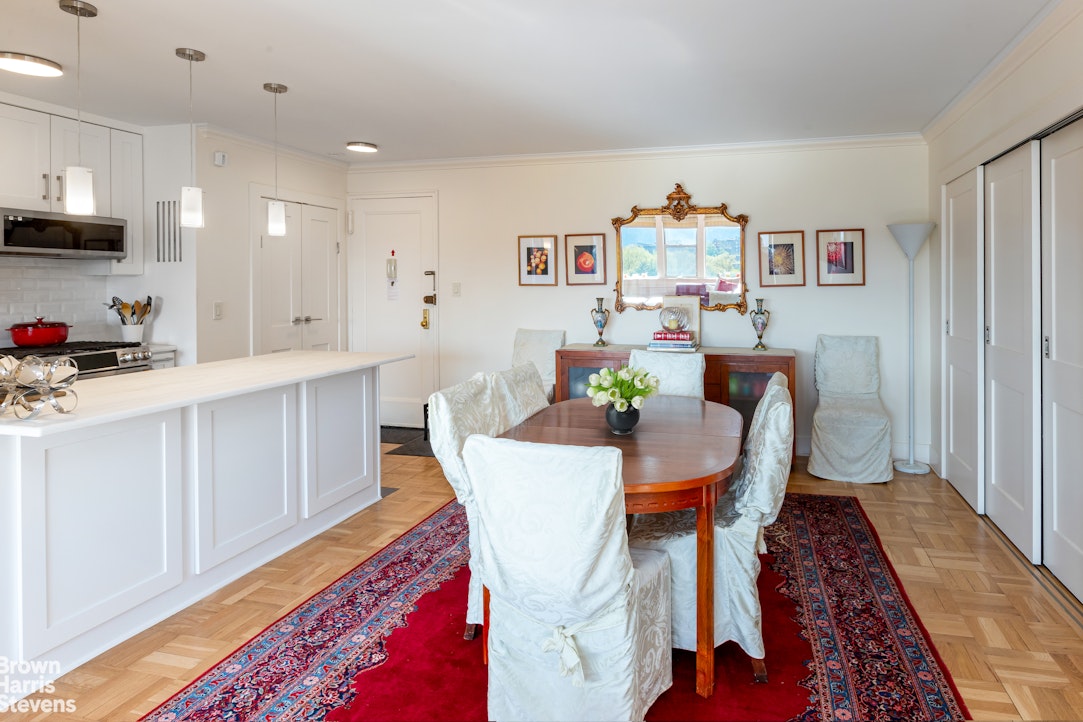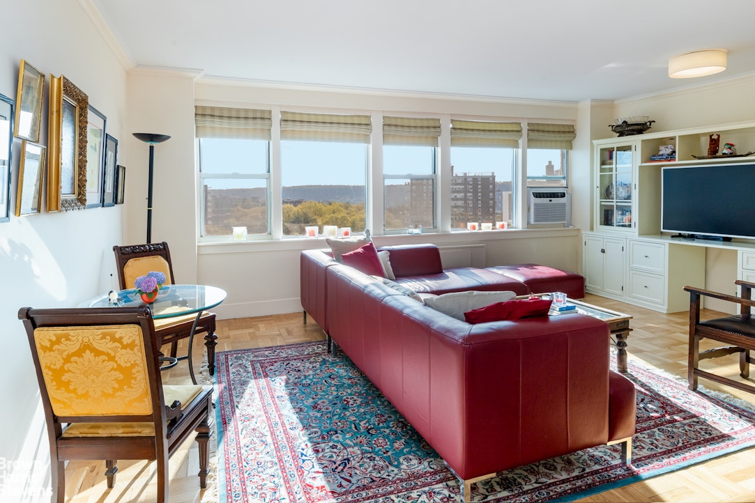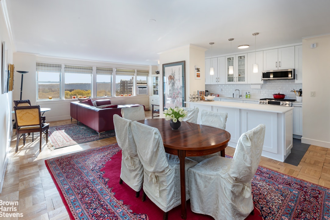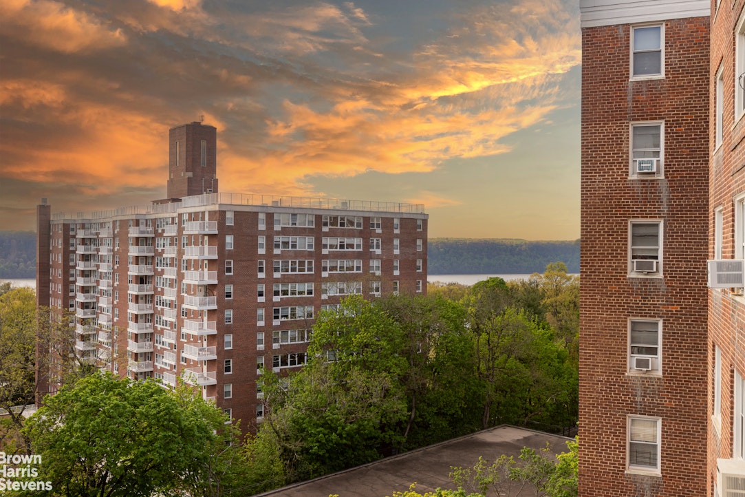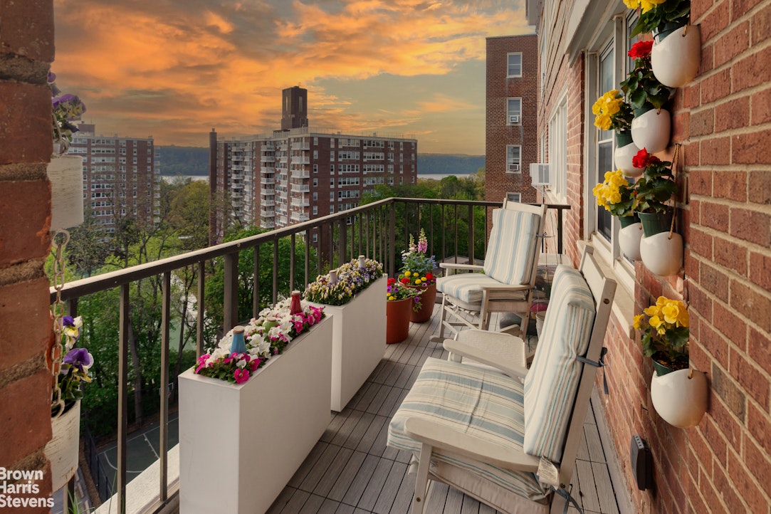 Perched high on a hill and filled with natural light, this beautifully reimagined two-bedroom, one-and-a-half-bath residence offers sweeping, west-facing views of the Hudson River, the Palisades, and the city skyline.