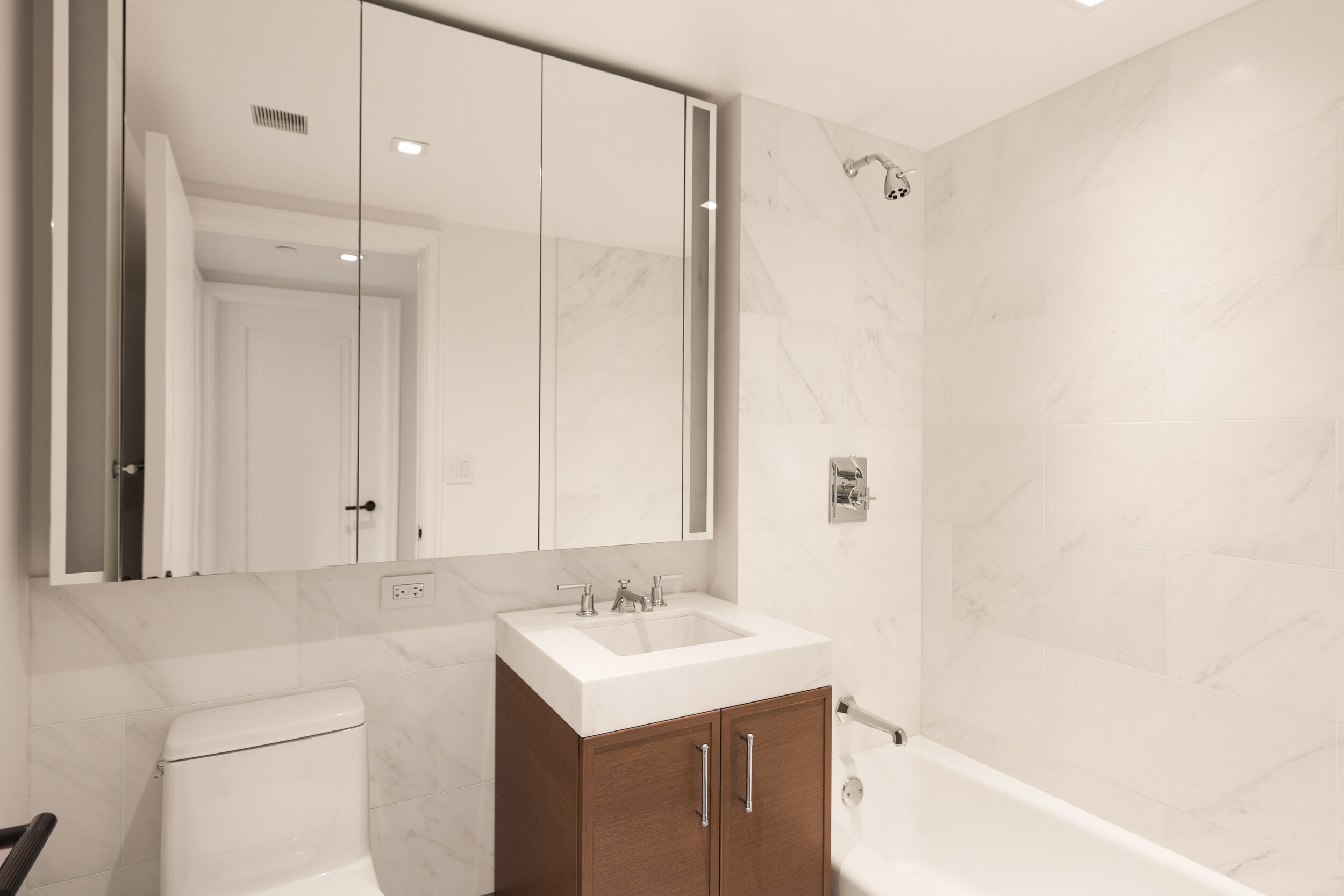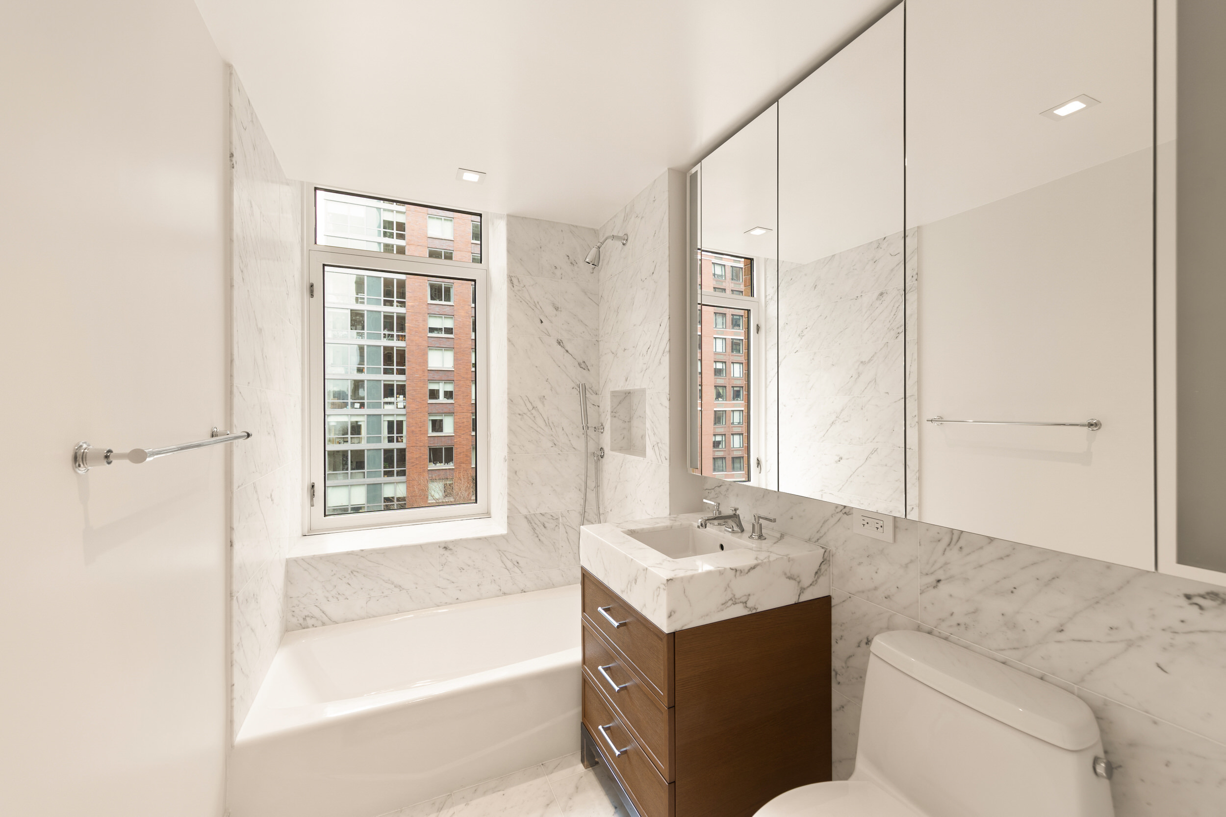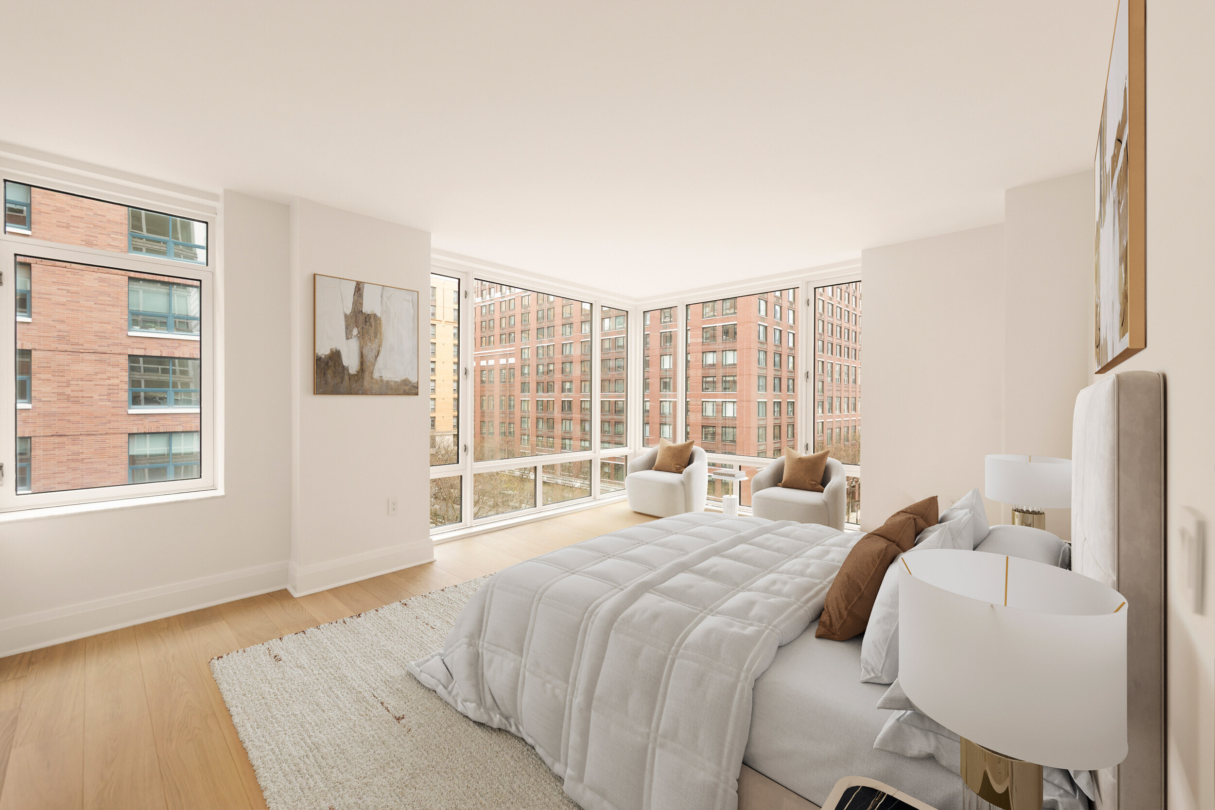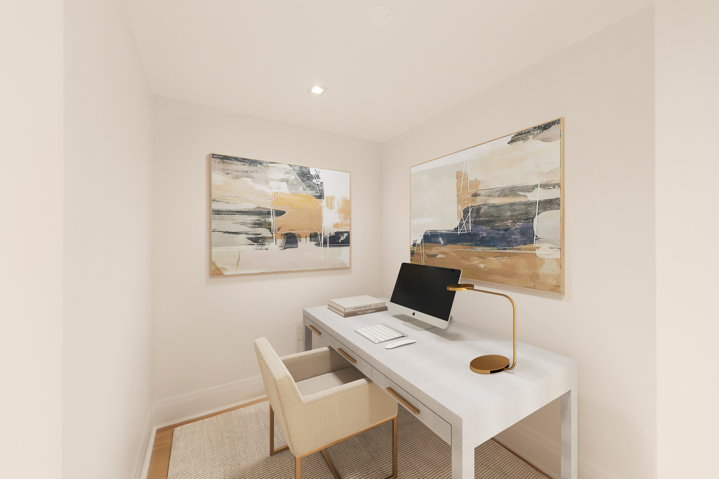 Unit 7A has a one-of-a-kind corner layout that features a home office, 2 split bedrooms and full baths. This residence features 7-inch wide-plank oak flooring throughout; the semi-open kitchen employs Miele appliances and oak cabinetry; the spa bathrooms feature custom vanity. This home comes complete with a Miele washer and dryer, and ample closets with select California Closets outfitting.