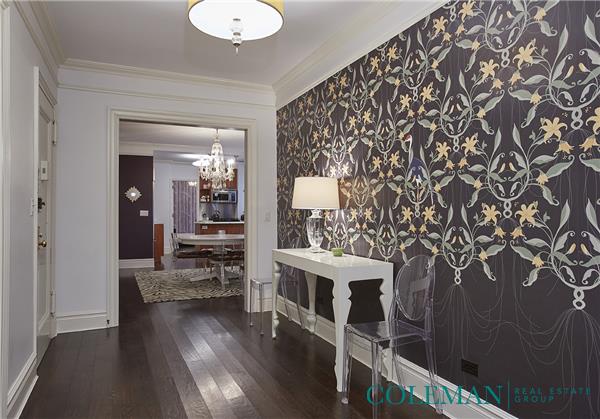 An elegant and modern gut renovation and redesign of this Classic Six unlocks the flow and function of this home's generously proportioned rooms. An opened gallery entrance accented by custom Wook Kim wallpaper sets the tone. The new ebony stained oak floors carry you either right to the deep double Living Room with tree lined views of 97th Street or left to the large entertainers dining room with a spectacular built-in serving buffet and china cabinetry. The large dining room is opened to the state of the art chef's kitchen with premium marble counters and breakfast bar, and stainless steel appliances. The Master Bedroom and Secondary Bedroom both have his and her deep closets and built-ins as well as warm custom fabric window treatments. The well thought out 3rd Bedroom currently serves as a wonderful windowed office with a bed for overnight guests. You will find well placed custom built-ins, designer soft fabric window treatments, curated light fixtures, and textured custom wall coverings throughout the home adding function and a fresh classic style to this elegant home. There is not a thing to do but call your movers. 755 West End Avenue is an exclusive full service well managed coop and the building's financials and wonderful maintenance reflect that. It was built in 1920 by the acclaimed Rosario Candela to be and is still considered by many to be the most handsome upper west side pre-war coop. Building amenities include full-time doormen, a live-in 24/7superintendent, children’s playroom, additional laundry facilities, storage and bike room. Riverside Park, the 1,2,3 train, Whole Foods and other shopping and incredible restaurants are conveniently right outside your door. Pets permitted. Up to 80% financing is allowed.