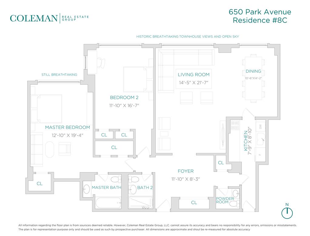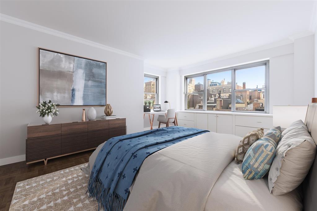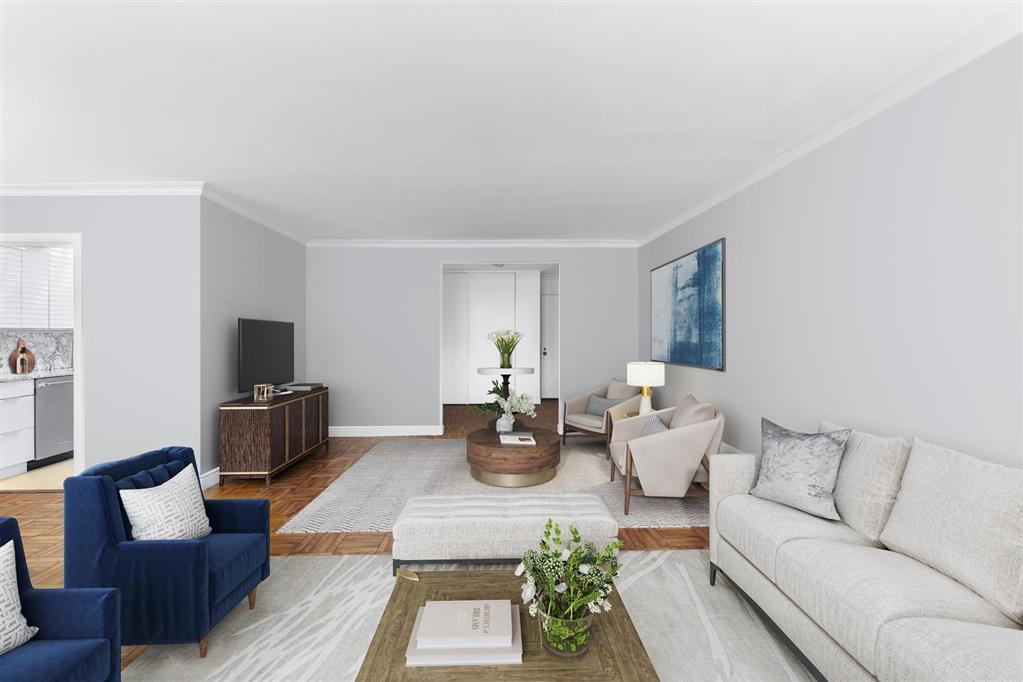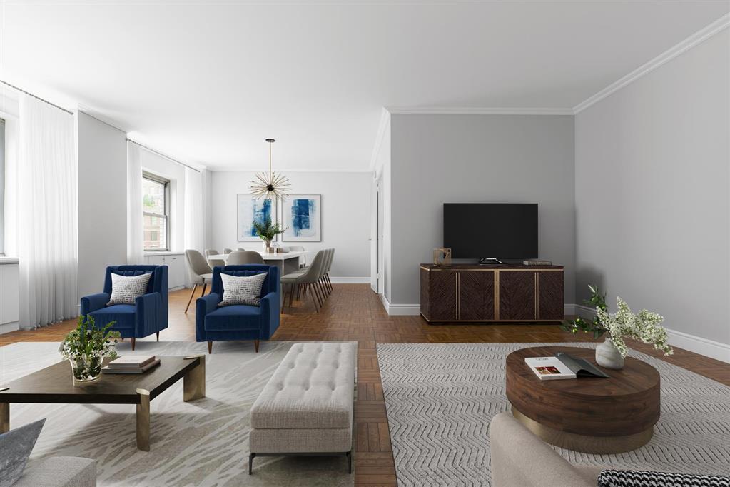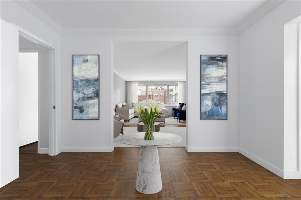 This well drawn home at 650 Park Avenue, a premiere full-service coop , offers spectacular room for living and entertaining as well as great privacy from enormous bedroom suites. Residence 8C is placed so well within and perched high above historic Upper East Side with picture views of handsome row townhouses from each room.