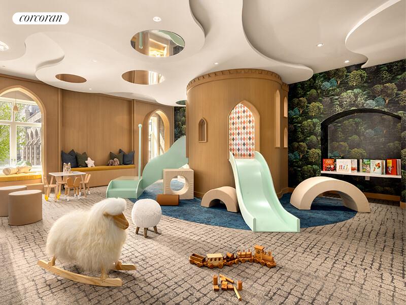 Claremont Hall's robust amenities span over three floors and include spaces for socializing, working, and relaxing. The experience is centered on the Refectory Pool, a grand historic dining hall transformed into a swimming and events space, featuring a 48" salt-water swimming pool. Claremont Hall is complete with a grand, double-height lobby, a Reading Room with Great Books Collection, a Gymnasium with Flex Space, the Little Castle playroom, media room, and a Residents" Lounge and Terrace overlooking tranquil Sakura Park. The building also features a concierge, handyman, porters, and a live-in resident manager, as well as a bicycle room, and the opportunity to purchase on-site parking and private storage.