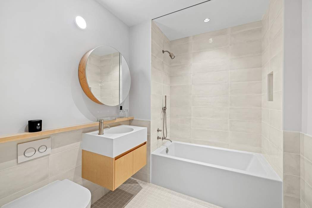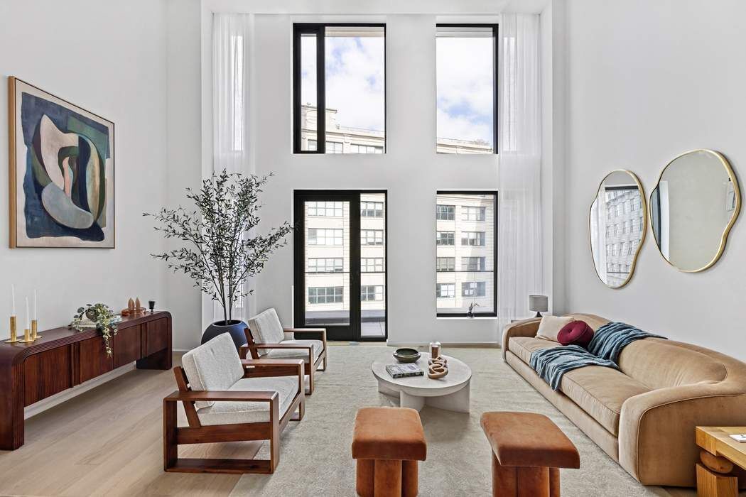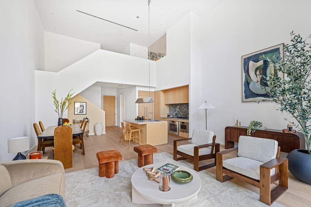 Immediate Occupancy. On-site model residences now available to tour by appointment. Introducing Duplex Residence 10B, featuring ceilings soaring up to 18', two bedrooms, and two-and-a-half bathrooms. Upon entry, the double-height foyer introduces the grand light-filled living space. The impeccably tailored Workstead-designed kitchen merges exquisite detail with rich materials. Featuring a statement kitchen island with inlaid Fior di Bosco stone slab and chamfered edges, raked maple cabinetry and millwork paired with satin nickel hardware and top-of-the-line Gaggenau appliances, the kitchen proves an integral part of the generous open living and dining area with oversized windows that look on to the private terrace. Discretely located off the foyer, the primary bedroom is complemented by an en-suite bathroom with Agglo Ceppo honed stone walls, flooring and countertops, and a custom-slatted white maple double vanity with satin nickel cabinetry pulls, deck-mounted faucet and oak controls. The lower level is concluded with a powder room featuring a refined pedestal vanity in African St. Laurent stone with a honed finish and chamfered edges, a hidden mirror behind wood shutters, and white maple-clad walls. On the upper level, meeting the soaring ceilings of the living space below, a private den and spacious secondary bedroom await. The en-suite secondary bathroom incorporates mosaic tile flooring, undermount tub with brushed nickel fixtures, custom vanity in maple with edge detail and a round mirrored medicine cabinet. A concealed laundry closet with LG washer & dryer completes the offering. Olympia is a modern interpretation of its surroundings. Rising tall from the heart of historic Dumbo, Olympia offers expansive views of the sun-drenched harbor and Lower Manhattan skyline from the highest crest in the neighborhood. Exteriors by Hill West Architects and interiors by Workstead, the 76 homes reflect a sense of scale and rhythm, and a palette of colors and materials that is grounded in the maritime and industrial heritage of Dumbo’s waterfront. Olympia is designed to maximize comfort and convenience, boasting over 38,000 SF of indoor and outdoor services and amenities spread over 3 levels. The Garden level features our ground floor amenities. Through a private entry court, a contemporary porte cochère welcomes you to a sheltered vestibule, and to the building’s triple-height lobby. The fully serviced lobby features a sculpture by Jacob Hashimoto and floor-to-ceiling window walls. Adjoining the lobby is the private garden lounge overlooking the MPFP-landscaped Gair Gardens. Located in the building’s lower level, The Club is all about fun and fitness, complete with a game lounge, bar, two-lane bowling alley, state-of-the-art fitness center, spin studio, boxing gym, private locker rooms and maritime-themed kid’s playroom. The Bridge level of Olympia, on the 10th floor, offers a variety of indoor & outdoor amenities dedicated to recreation and relaxation. Features include a 60’ indoor lap pool, wellness amenities, juice bar, a 58’ outdoor pool and hot tub, cabanas, barbecue areas, children’s ship-inspired playground & waterpark, and a full-size tennis court overlooking the Brooklyn Bridge, lower Manhattan and beyond. Additional services include private on-site parking available for rent or purchase, 24-hour doorman and concierge, package room with refrigerated storage, bicycle storage and private residential storage available for purchase. Sponsor: Fortis Dumbo Acquisition, LLC, 45 Main Street, Suite 800, Brooklyn, NY 11201; Sponsor makes no representation or warranties except as may be set forth in the offering plan filed with the NYS Department of Law. The complete offering terms are in an offering plan available from sponsor. NYS Department of Law File No. CD20-0174. Equal Housing Opportunity. Co-exclusive.