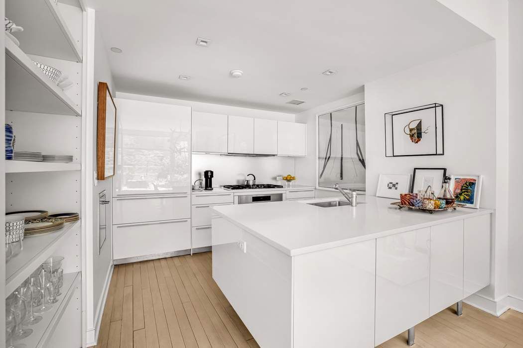 Artfully curated with contemporary panache, this one-of-a-kind 7th floor residence in the “Number 5” condominium, designed by Philip Johnson and Alan Ritchie, is its most coveted. Its south-facing terrace oasis spans the entire length of the entertaining space and features full on views of its spectacular garden landscape. Perfectly placed mature plantings brilliantly incorporate an exterior architectural column, an homage to its renowned post-modern architect, Mr. Johnson. Simply put, it is a “wow”. This full-floor 2-bedroom condominium has direct elevator access and a spacious floorplan separating the sleeping quarters from the living space by a gallery hallway. Luxury living with total privacy. The large, lushly landscaped terrace boasts a variety of mature red maple and magnolia trees, beautifully designed containers of herbs, aromatic plants and even a butterfly bush! Lounge in the sunshine among the hydrangeas or delight in the glow of the lightscaping as you enjoy the romantic dining area all curated to evoke a peaceful serenity amid city living. The great room includes an integrated, modern high-end Bulthaup kitchen with high gloss white lacquer cabinets, Sub-Zero, Miele gas cooktop, Fisher & Paykel dishwasher, custom display shelving and white stone bar counter for gracious indoor dining. The dining room area accommodates a large dining table against the backdrop of a large art opportunity wall. The living is an art collector’s paradise framed by the leafy landscape through the home's floor-to-ceiling windows. The hallway includes a front hall closet, new Bosch stacked washer/dryer, full bath with glass-enclosed shower and leads to the colorfully designed comfy guest room/den with lounge media area. The tranquil primary bedroom accommodates a king-sized bed, and features an en-suite sumptuous bath with large vanity, TOTO Neorest toilet, large soaking tub with glass-enclosed shower and stunning floor-to-ceiling glass tiling. Other features include whitewashed oak wood flooring through-out, new HVAC air units with remote access, a boutique, well-managed building with doorman services weekdays 7am–11pm, weekends 9:30am–9:30pm.