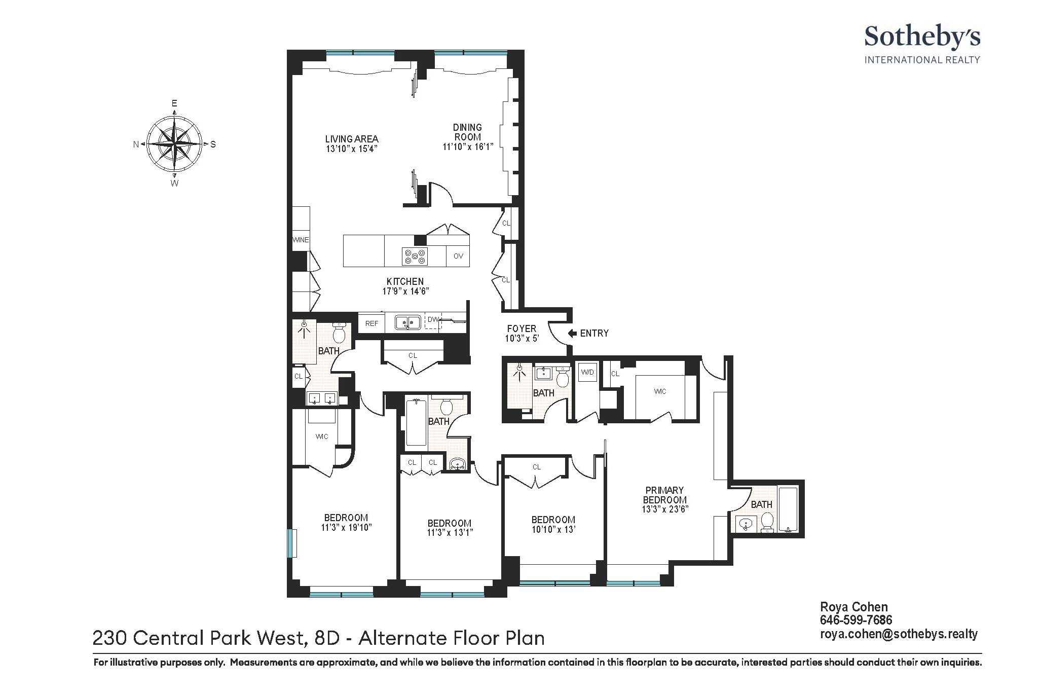 A hallway leads to four very peaceful, west-facing bedrooms that have afternoon light. The flexibility of the floor plan would also allow easy conversion of a bedroom to a work-from-home space, a library or a playroom. Additional features include four renovated bathrooms, a laundry room with a stacked washer/dryer and storage, and excellent closet space throughout. An alternate floor plan shown, allows for the addition of a large walk-in closet, in one of the larger bedrooms, and additionally, you will love the very reasonable maintenance fee of this splendid home.