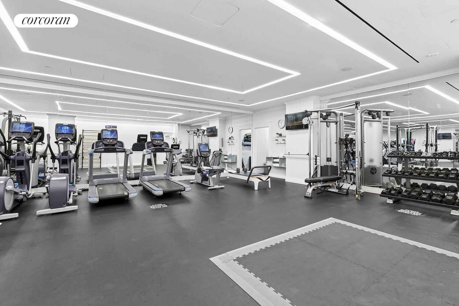 Building amenities include a 24-hour concierge and doorman , indoor pool , fitness center , spa and steam rooms , resident lounge , catering kitchen , recreation room , private storage, and on-site parking .