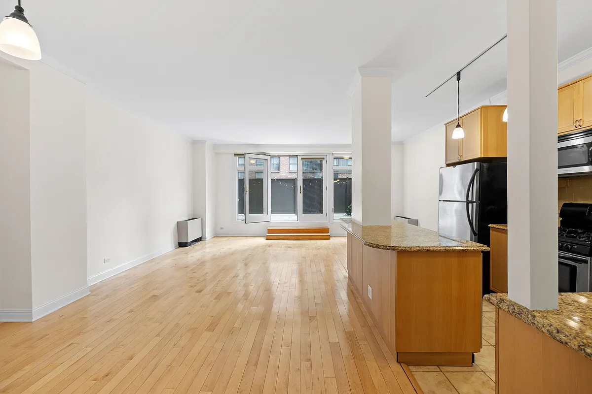 Private Garden Living with Two-Bedroom Flexibility I am excited to introduce you to 345 East 73rd Street #1A, a rare Upper East Side residence that offers not only an expansive private garden oasis but also the versatility to easily convert into a two-bedroom home. This unique opportunity is located in the desirable Morad Diplomat, a premier full-service building known for its attractive exterior and recently upgraded common areas. Inside, soaring 10-foot ceilings create an airy atmosphere, while wide-plank wood floors add warmth throughout. The open-concept kitchen is outfitted with stainless steel appliances, a wine fridge, and a breakfast bar that flows seamlessly into the dining and living areas. The spacious primary bedroom, oversized pantry, and abundant closet space provide both comfort and functionality. With an alternate floor plan already in place, the home can be reimagined as a two-bedroom with pocket doors — offering flexibility for your lifestyle needs. The true highlight of this residence is the recently renovated private landscaped garden, complete with power and water. Perfect for entertaining, dining al fresco, or simply unwinding outdoors, this rare amenity transforms city living into your own urban retreat. The Morad Diplomat offers a host of amenities, including 24/7 doorman service, a live-in super, bike room, common garden, laundry facilities, storage (with a waitlist), and garage. Recent capital upgrades include a new boiler, water tower, refreshed hallways, and modernized elevators.