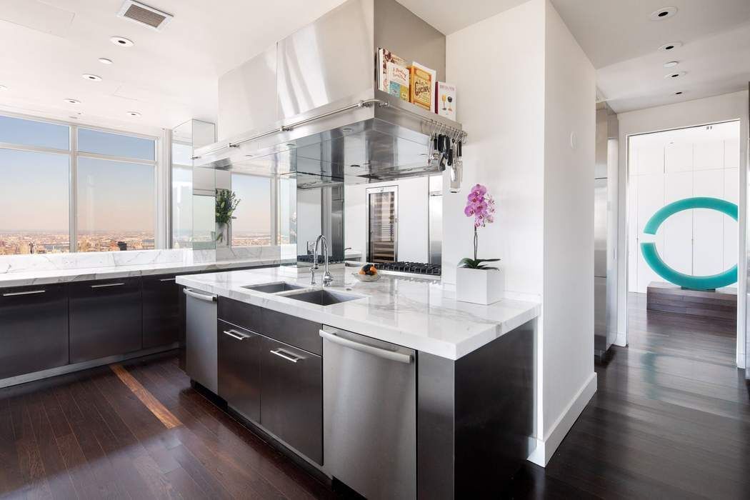 • Breathtaking views from this extraordinary and glamorous 81st floor home maintained in pristine condition. This approximately 4500 square feet residence offers 3 bedrooms and a library or 4th bedroom and 5 full bathrooms From sunrise to sunset, take in breathtaking, panoramic views in every direction—completely unobstructed and stretching from the East River to the Hudson, across the Manhattan skyline and its most iconic landmarks. The grand entry foyer immediately reveals the apartment’s impressive scale and sweeping vistas. An expansive corner double living room features stunning East River and northern skyline views, while the formal dining room showcases dazzling West and North exposures—ideal for sunset viewing. Between the two, a windowed chef’s dream kitchen boasts top-of-the-line appliances, including a double Sub-Zero refrigerator, oversized wine cooler, dual refrigerator drawers, double oven, and a separate laundry area. The long marble-topped bar invites effortless entertaining both large and intimate. The tranquil double-sized primary suite and adjoining library (or 4th bedroom) face East over the river, creating a serene retreat. On the opposite wing, two additional generously sized bedrooms enjoy dramatic western exposures with views of the Empire State Building, Chrysler Building, and a skyline filled with architectural icons. Five full bathrooms ensure ultimate convenience and privacy. This striking home features nearly 11-foot ceilings, floor-to-ceiling windows, wide-plank hardwood floors, multi-zone central air and heating, and motorized window treatments throughout. About 845 United Nations Plaza: Designed by renowned architect Costas Kondylis, this premier full-service condominium offers white-glove service including 24-hour doorman, concierge, and valet parking via a private driveway. Amenities are world-class: • Fabulous Club 845 with renovated 2 level lounge and conference room • 10,000 sqft Full-service health club & spa with Sauna, Steam and Massage rooms • including a 60-foot indoor swimming pool • Landscaped courtyard and garden with dog run • Children’s playroom • Valet Parking On-site dining includes the acclaimed World Bar and UN Plaza Grill. • Gas, water, and electricity are sub-metered • No assessments currently in place • Building allows two dogs under 28 lbs