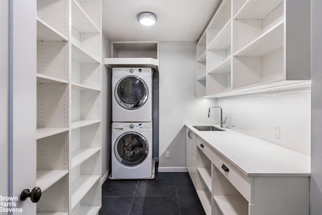 Additional highlights include a rare, oversized "urban garage" off the foyer - ideal for bikes, recreational equipment, or seasonal items - as well as a dedicated laundry room with sink, folding counter, and extensive shelving.
