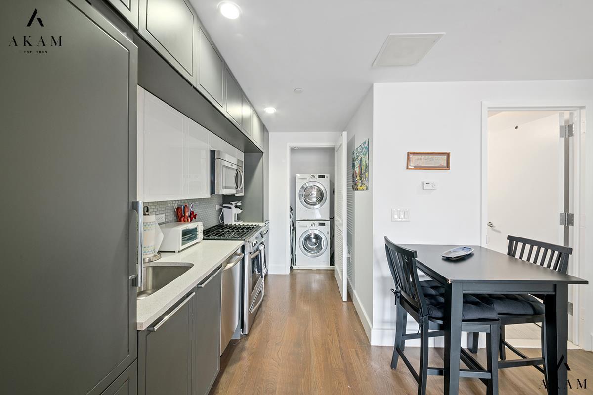 • **Stunning Penthouse Corner Residence with Skyline Views | 1-Bedroom Condo in Hell's Kitchen** Priced to sell! Welcome to this fully renovated, top-floor penthouse condo offering breathtaking views of the New York City skyline. This spacious 1-bedroom corner residence combines luxury with comfort, featuring a bright and expansive living room, perfect for entertaining or relaxing. The home boasts high ceilings and elegant oak wood floors throughout, enhancing the sense of space and style. The open, renovated kitchen is a chef's dream, complete with Caesarstone countertops, stainless steel appliances (including a dishwasher), and an LG washer/dryer for added convenience. The bedroom offers privacy, comfort, great closet space and stunning skyline views. The expertly designed bathroom is a true retreat, with radiant heated floors and a sleek walk-in shower. Ample closet space, central AC and heat, and a proper entryway add to the thoughtful design and functionality of this exceptional home. 432 W 52nd Street is a premier boutique condominium located in the heart of Hell’s Kitchen, offering modern luxury and unparalleled convenience. Residents enjoy a beautifully landscaped 4,200 square-foot roof deck with stunning city views, perfect for relaxing or entertaining. The building also features a fully equipped fitness center, a stylish resident lounge for social gatherings, a secure bike room, and a doorman. Ideally situated within walking distance to Times Square/Theater District, Hudson River, Columbus Circle, and Central Park, 432 W 52nd Street offers the best of New York City at your doorstep with easy access to the A/C/E, B/D, 1, and N/Q/R subway lines.