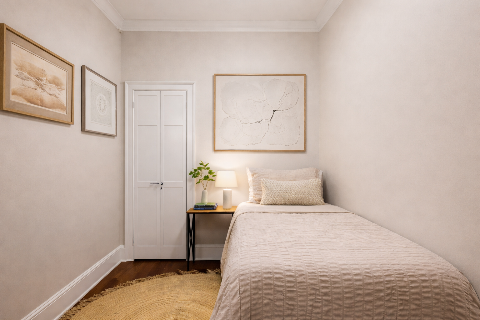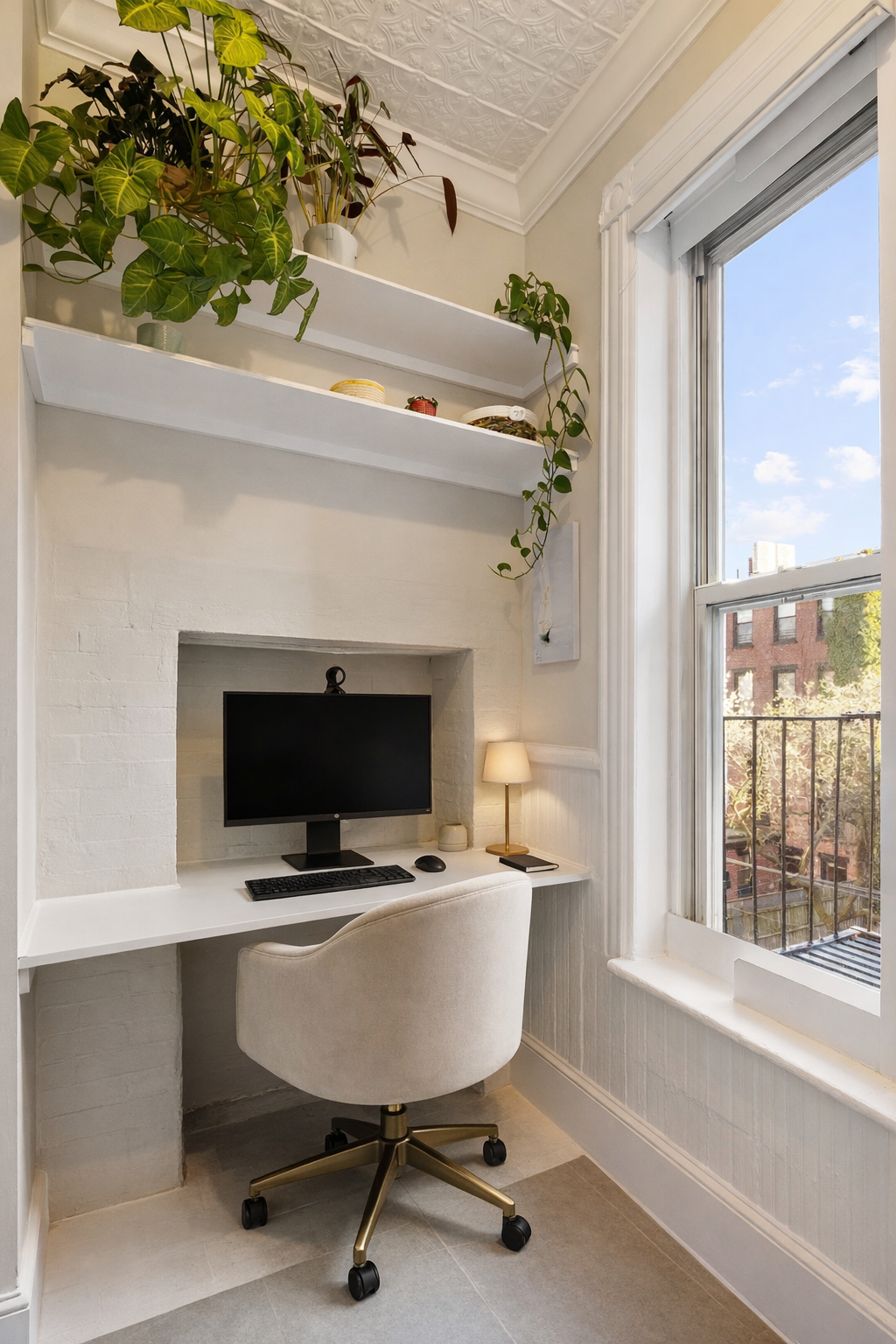 Beautifully renovated turnkey two bedroom floor-through on a quiet, tree lined block in prime Park Slope. This home blends classic prewar details with thoughtful modern upgrades throughout. The sun-filled living room features a bay window, original fireplace, and rich hardwood floors. A separate dining area flows into a custom kitchen with white shaker cabinetry, quartz countertops, and a standout Ilve range. The primary bedroom has exposed brick, a Hearth Cabinet smokeless fireplace, brass sconces, motorized blinds, and exceptional storage — a walk-in closet and an additional closet, both with custom Elfa systems. The second bedroom is privately situated with ample storage. The bathroom features imported Italian shower tile, brass hardware, and heated floors. Additional highlights include in-unit laundry, dishwasher, a dedicated home office, and private keyed basement storage. Monthly maintenance is $810. Building upgrades include a new roof, hot water heater, exterior waterproofing, and brick repointing. A parking spot in a nearby private lot can potentially transfer. Two blocks to Prospect Park. Five minutes from the B/Q and 2/3 trains. Within two blocks: gym, daycare, food co-op, grocery, coffee, and more. Self managed four unit co-op, pets on approval.
