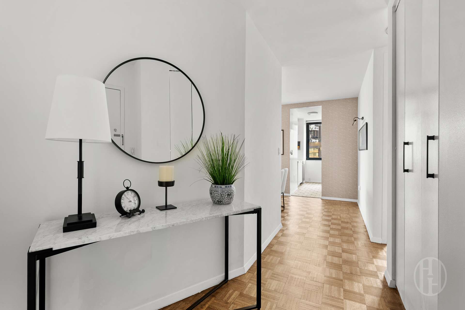 This impressive 1-bedroom home enjoys spectacular sunlight and city views from large south and west facing wraparound windows. Upon entering the gracious foyer, you’ll notice the newly refinished parquet floors, a walk-in closet currently configured as a home office, and an additional coat closet. Past the dining area, the windowed kitchen has top-of-the-line stainless steel appliances, Caesarstone Carrara countertops, a pass-through window, and a beautiful marble mosaic backsplash. The living room is spacious enough to accommodate over-sized furniture, and comes outfitted with a built-in Murphy bed perfect for weekend visitors. The king-sized primary bedroom is bathed in western light, and features a double-wide closet. The Copley is a full-service condominium with 24-hour door staff. Residents enjoy access to the 3-level health club with a 40-ft pool, whirlpool, sauna, and aerobics room, as well as a children's playroom, a beautifully landscaped garden, an outdoor playground, and laundry facilities. The Copley is situated in one of the most sought after neighborhoods, two blocks from Central Park, and down the street from Lincoln Center for the Performing Arts. Nearby dining options include The Smith, Cafe Luxembourg, Cafe Fiorello, Zizi Wine Bar, and Levain Bakery, and major transportation includes the 1/2/3 and B/C trains as well as numerous bus lines. Whether you are seeking a primary residence, an investment property, or a Manhattan pied-a-terre, this home represents the very best of Lincoln Square living. Note: Some photos are retouched and virtually staged. The floor plan and dimensions are approximate, and parties should consult an architect to verify. Advertised real estate taxes are based on usage as a primary residence.