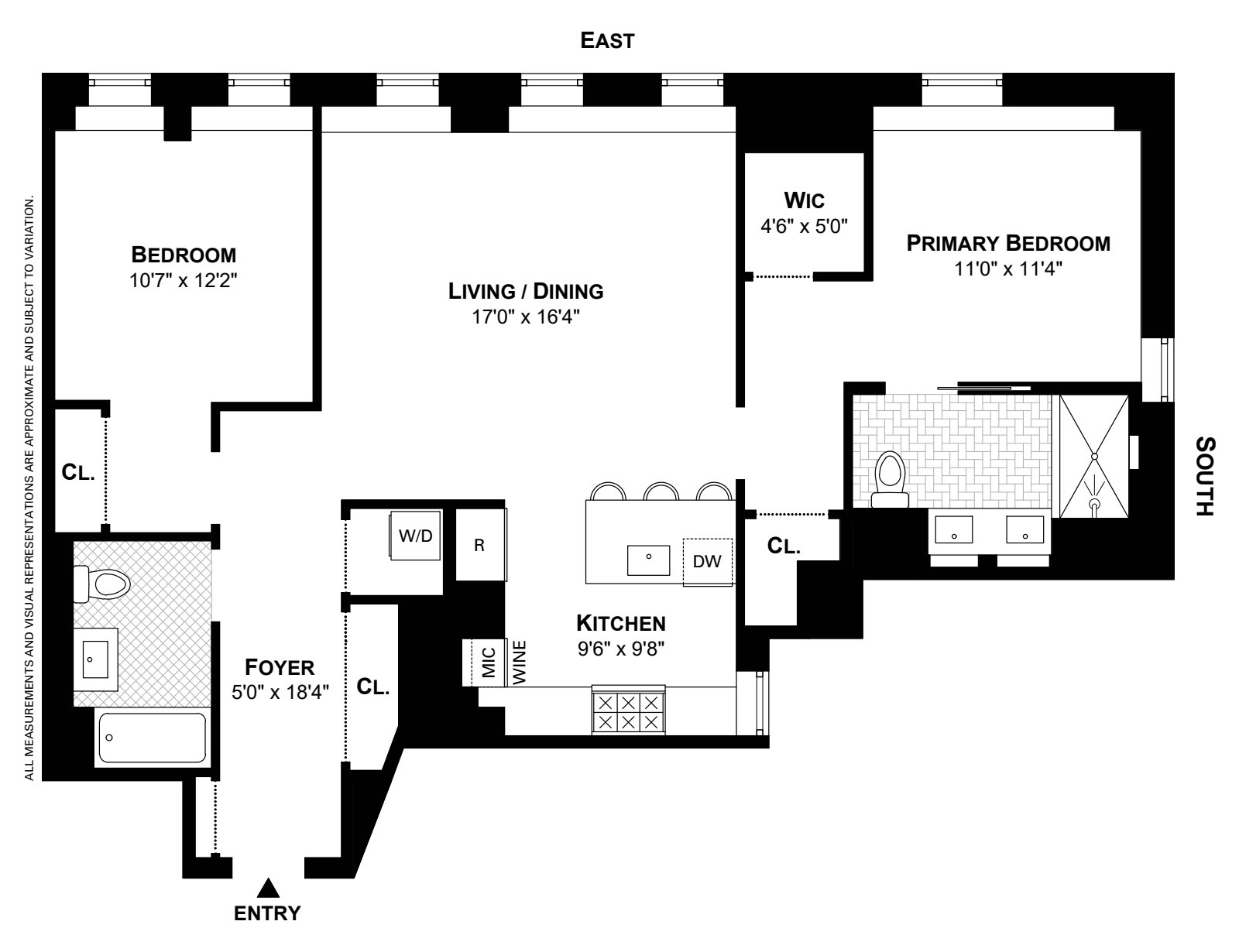 • Residence 9D at 393 West End Avenue is a stunning 2 bedroom, 2 bathroom home in mint condition, offering a split floorplan ideal for privacy, Eastern exposure, smart home features, and an in-unit washer and dryer.