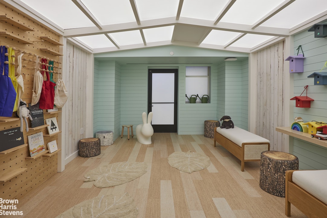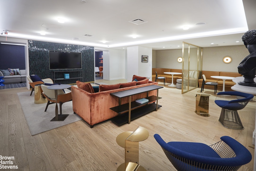 Additional highlights include multi-zoned LG VRF cooling with Nest smart thermostats and energy-efficient LED lighting throughout. Storage bin is available for purchase. Residents enjoy a full amenity suite including a fitness center with movement studio, Great Room, Club Room, lounge, children's playroom, and a private landscaped courtyard.