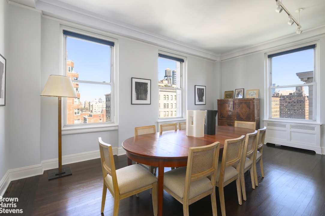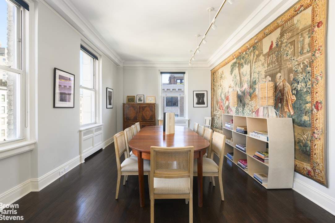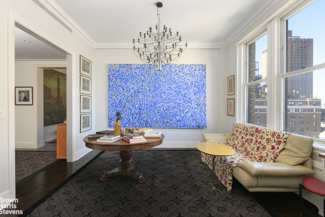 • Perched high above Park Avenue at the apex of Carnegie Hill, this sophisticated 10 into 9 room prewar gem, elegantly rethought, offers gracious living on the Upper East Side. Sun-drenched, the 12th Floor corner residence has soaring 10' 6" ceilings, glamorous living space, stunning original detail and open views in every direction. The large, square entry foyer leads to a beautifully proportioned living room with wood-burning fireplace, oversized windows, stunning hardwood floors, and captivating western exposures overlooking the bell tower of Brick Church. Another elegant sitting room or library connects to a stunning corner dining room that boasts a sweeping double exposure west and north with open views up Park Avenue.