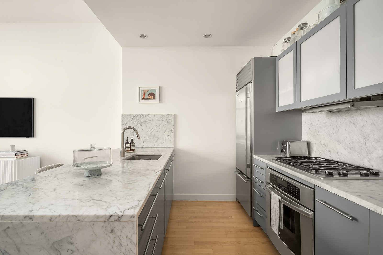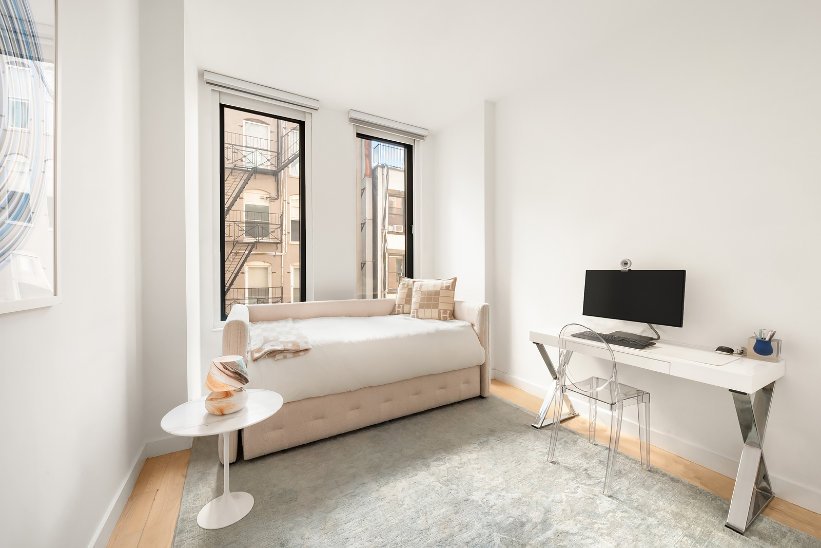 • This spectacular two-bedroom, two-bath home is ideally situated at the crossroads of SoHo and NoLita, offering sweeping open city views with stunning eastern exposure overlooking the Williamsburg Bridge. Residence 5D is a sleek, modern reinterpretation of classic loft living, featuring 10-foot ceilings and oversized, triple-glazed, laminated 8-foot windows that flood the space with natural light. The open-concept designer kitchen is outfitted with premium finishes, including white Carrara marble countertops and backsplash, gray lacquer cabinetry, and white laminated glass fronts. Top-of-the-line appliances include a Miele cooktop and oven, Bosch dishwasher, and Sub-Zero refrigerator. Both bathrooms are elegantly appointed with white lacquer cabinetry and refined fixtures. The primary spa like bath features an oversized soaking tub and a separate glass-enclosed shower. Additional highlights include gorgeous wood flooring throughout, abundant storage with custom closet systems, and a Bosch in-unit washer and dryer. Building Amenities: One Kenmare Square is a full-service boutique luxury condominium offering: 24-hour doorman Live-in resident manager Fully equipped fitness center Additional entrance at Crosby Street Perfectly positioned in one of downtown Manhattan’s most desirable neighborhoods, you’ll be surrounded by world-class dining, shopping, and cultural destinations, with convenient access to the 6, N, and R subway lines. **Showings** Please note tenants are currently in place; a minimum of 24 hours’ notice is required. Showings are limited to select days and times. Capital assessment of $297.77 per month until Dec 2026 $54.45 cable fee per month paid by owner ***Please note the real estate taxes do not reflect primary residency. Primary residents can apply for the abatement to lower the annual taxes.