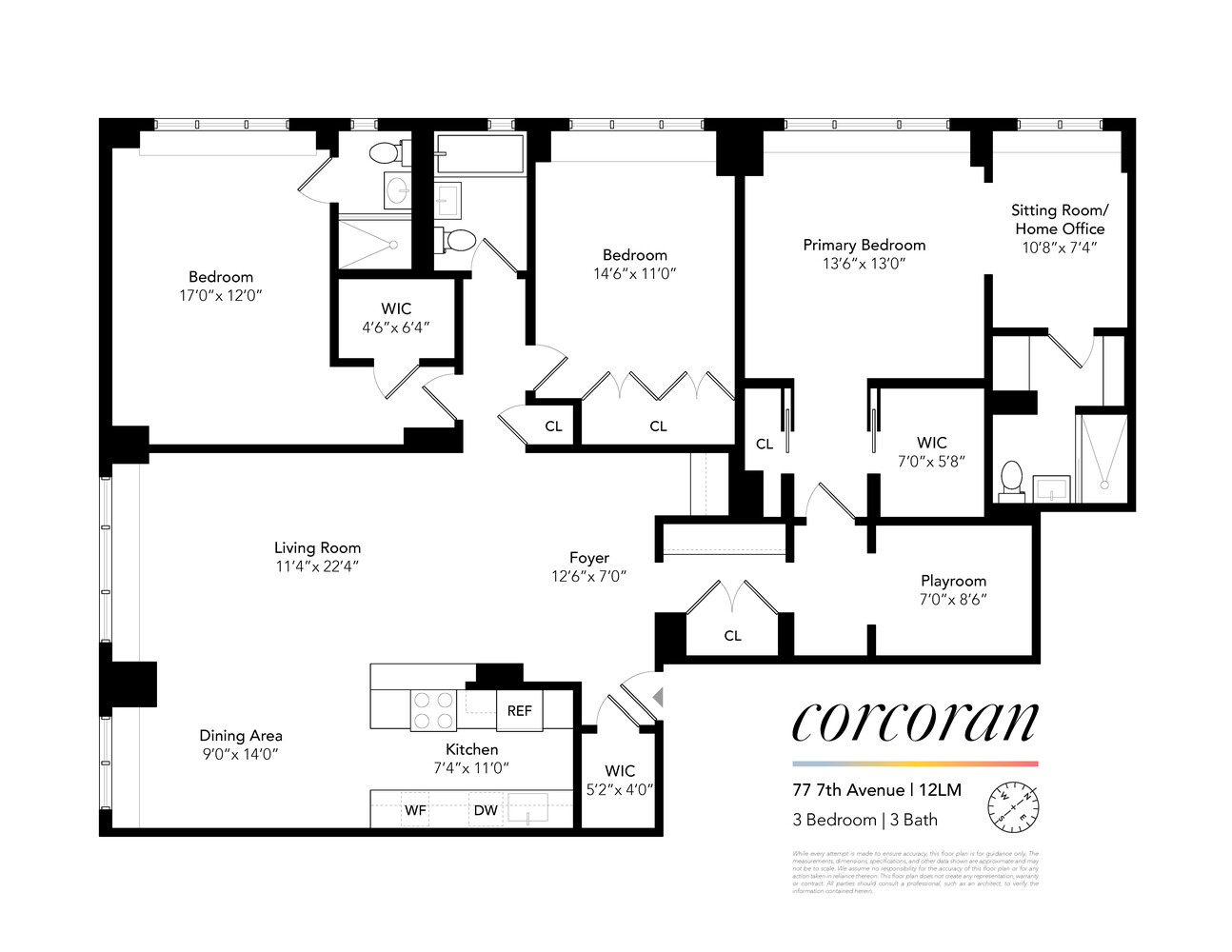 Residence 12LM is a beautifully renovated corner three-bedroom, three-bathroom home with a bonus room, offering approximately 1,900 square feet of thoughtfully designed living space at The Vermeer, one of Chelsea's most sought-after full-service cooperatives.