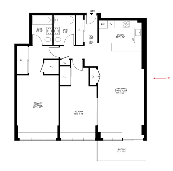 High-Floor, Fully Renovated, True 2-Bedroom, 2-Bathroom Home with Balcony
