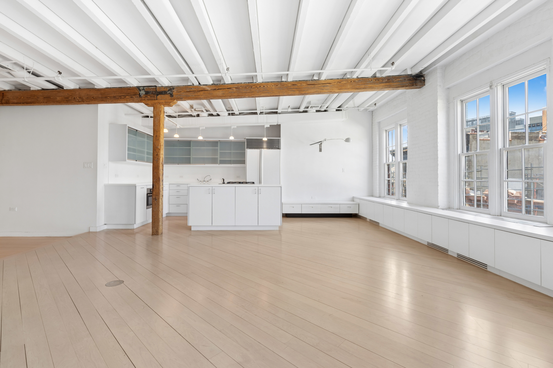 140 Thompson Street is a prewar gem built for the Marvin Safe Co. in 1903. It became a cooperative in 1978. This location is at the cross section of Soho and the West Village. Apartment 6B is a large loft-style duplex with just over 2000 square feet. The upstairs features an enormous open living room/dining room facing West with incredible light and unobstructed views. The open concept kitchen has Miele appliances and great storage space. There is a full bathroom upstairs. The apartment has retained some lovely prewar details such as rough hewn wood columns, brickwork walls, 10' ceilings, and an original entry way door frame from a bygone era. Downstairs offers a flexible layout with two nice sized bedrooms, a full bathroom and a half bathroom, a washer dryer, terrific closet space and East exposure.