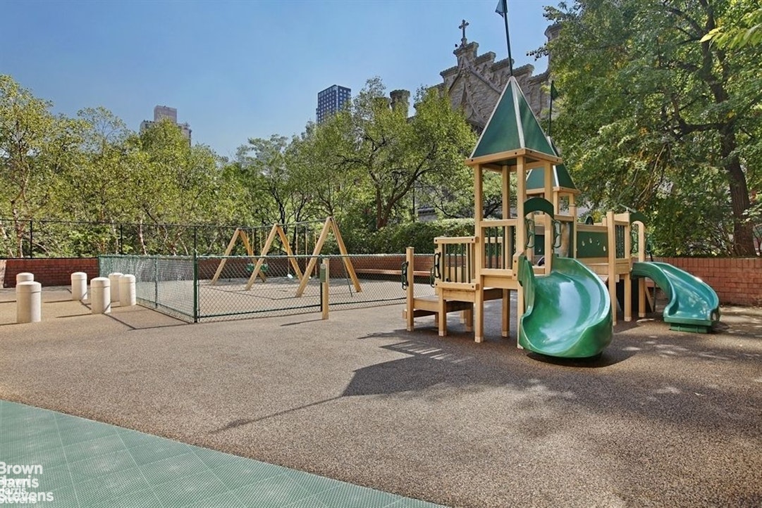 This building has a 24-hour doorman, concierge, valet/dry cleaning services, private playground, private terrace with grills, garage, mail room, bike room and laundry room. However, the building's best feature is that it is located on a beautiful tree-lined cobblestone street that is permanently blocked from traffic, creating your very own front yard in the middle of New York City.