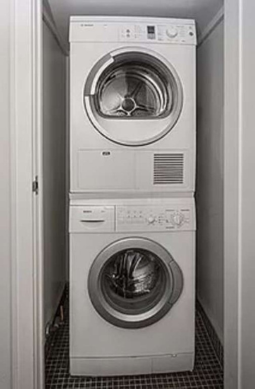 9.5-foot floor-to-ceiling tinted windowsBosch washer/dryer (inside a closet in the bathroom)Kitchen with Caesarstone counters and breakfast bar with seating for 4 stoolsStainless steel appliances incl fridge/freezer, dish washer, microwave, stove/oven, range hood/ventLarge bedroom with custom closetBath with deep soaking tubAmerican walnut hardwood floors2 extra-large closetsVideo intercom system with remote accessibility via mobile appCommon charges include water, gas, and use of building amenities