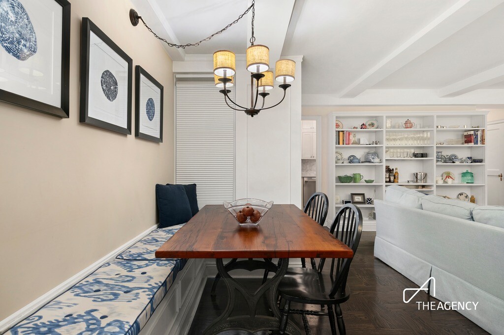The living and dining spaces are both inviting and versatile, offering a comfortable setting for everyday living while easily accommodating more formal entertaining. There is a calm, residential quality to the home-enhanced by its position within the building-that makes it feel removed from the pace of the city.