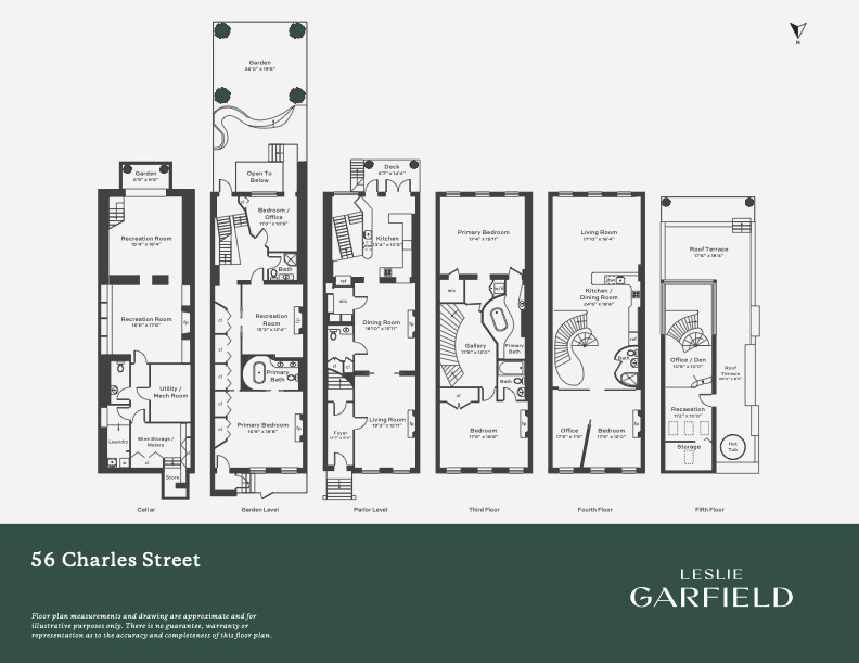 This beautifully restored 20'-wide Greek Revival townhouse, originally built in 1843, offers an exceptional blend of historic character and modern luxury. Spanning six levels and approximately 6,000 interior square feet, the home features six bedrooms, five bathrooms, seven fireplaces, four outdoor spaces including a south-facing garden and finished roof deck and a finished cellar. Currently configured as a two-family residence, it can be seamlessly converted to a grand single-family mansion.