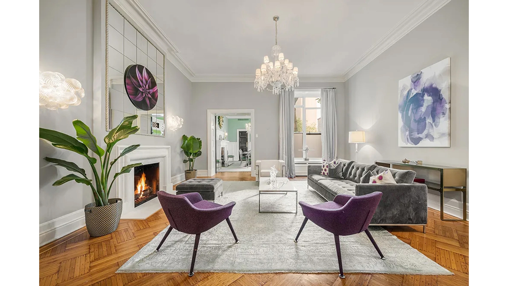 Entering the home, a grand entry gallery, adorned with marble accents, greets residents and guests. Expansive windows invite natural light that dances across the gleaming hardwood floors, creating an airy and inviting ambiance throughout. Well-proportioned rooms showcasing high ceilings, refined finishes, and custom millwork all provide an ideal canvas to create multiple gracious spaces for both living and entertaining.