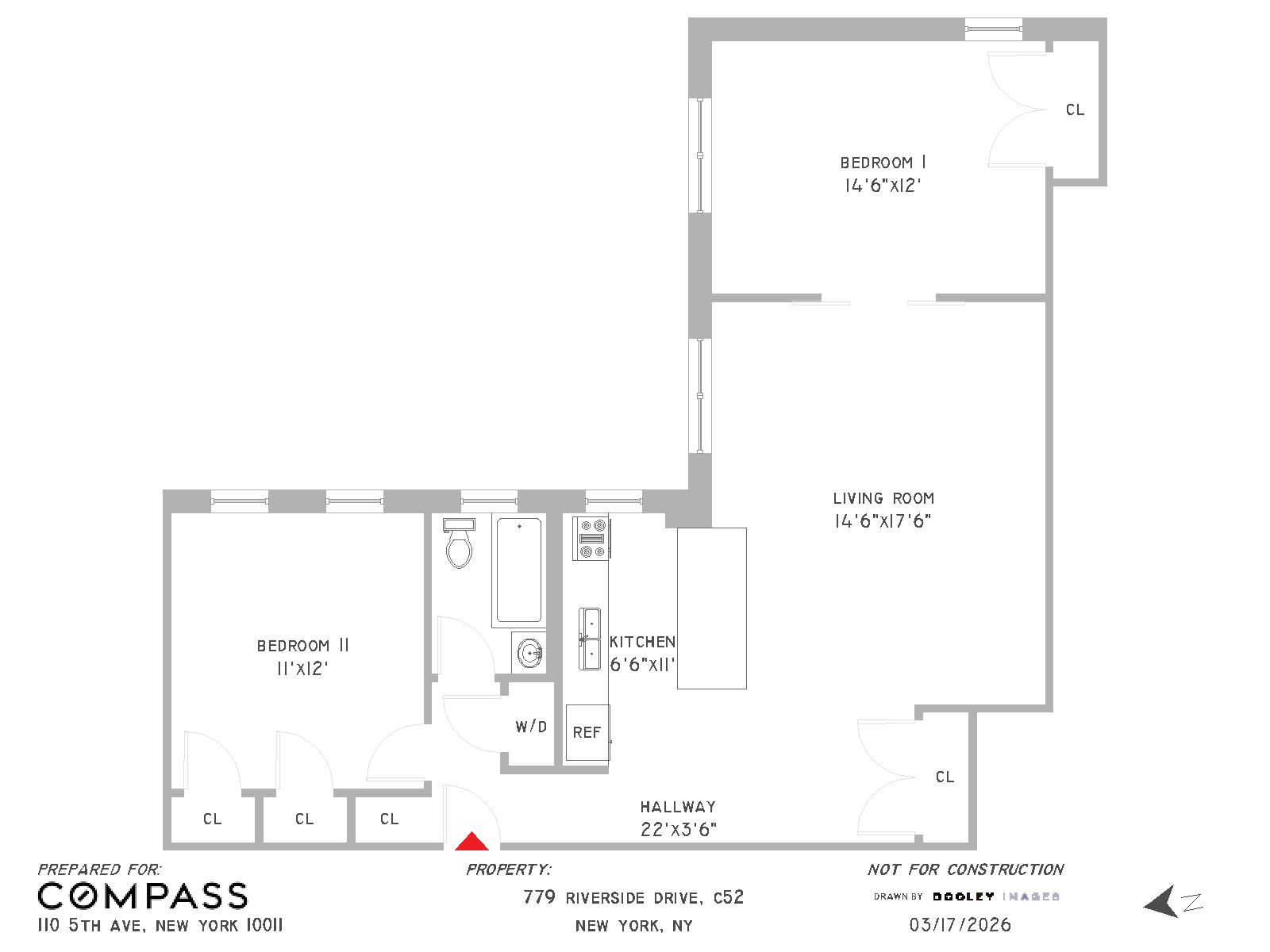 A centennial celebration! Presenting unit C52 at 779 Riverside Drive, a thoughtfully renovated pre war condo with all the modern details of current day. Built in 1926 and transformed in 2018, this unit maintains the charm we love of the 1920s buildings and levels up to 2026 conveniences. The floor plan has an open kitchen with sleek appliances, a large window and generous counter space for prepping and dining. The winged bedrooms are conducive to privacy. Custom barn doors, exposed brick, and stunning hardwood floors give it that downtown loft feel in an uptown setting. Great closet space throughout the living space and bedrooms and there is a full size washer dryer in the unit! Step off the 1 train on convenient Broadway and 157th st to the Crillon Condominium, nestled in the Audubon Triangle at 157th and Riverside Drive. There is a full time doorman and live in super ready to assist. Just one block from all that you need for your busy life, to total tranquility at home!