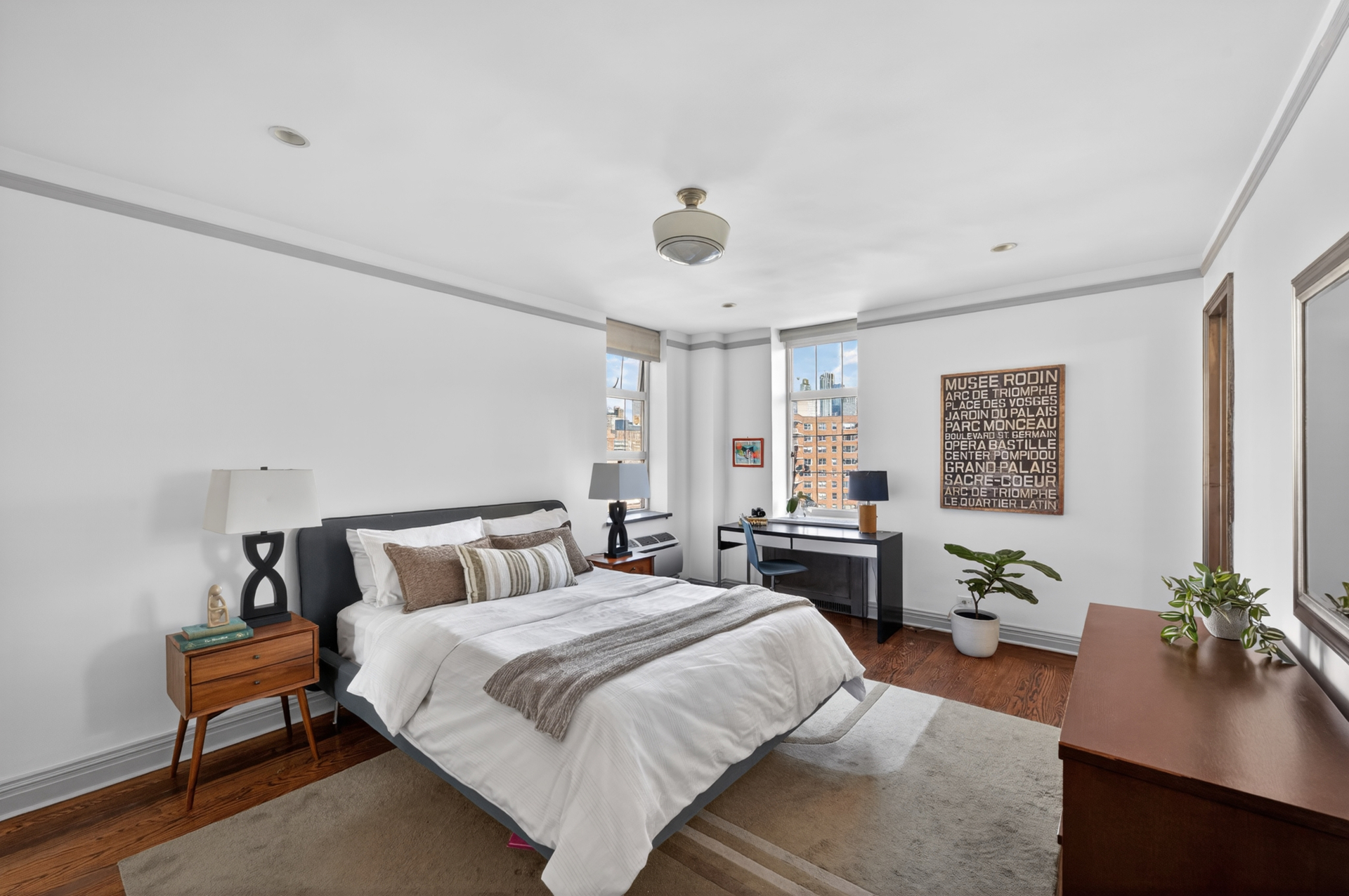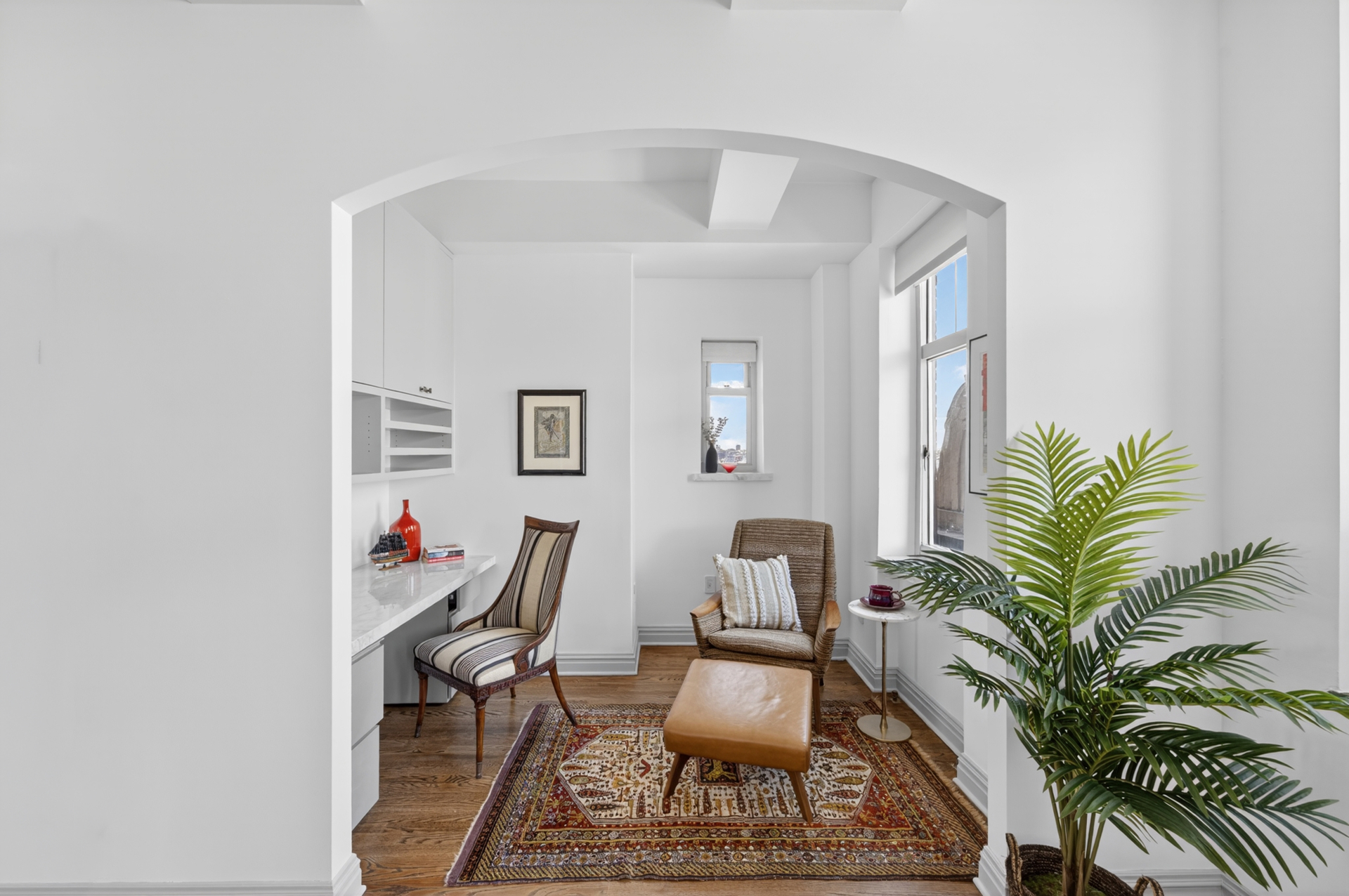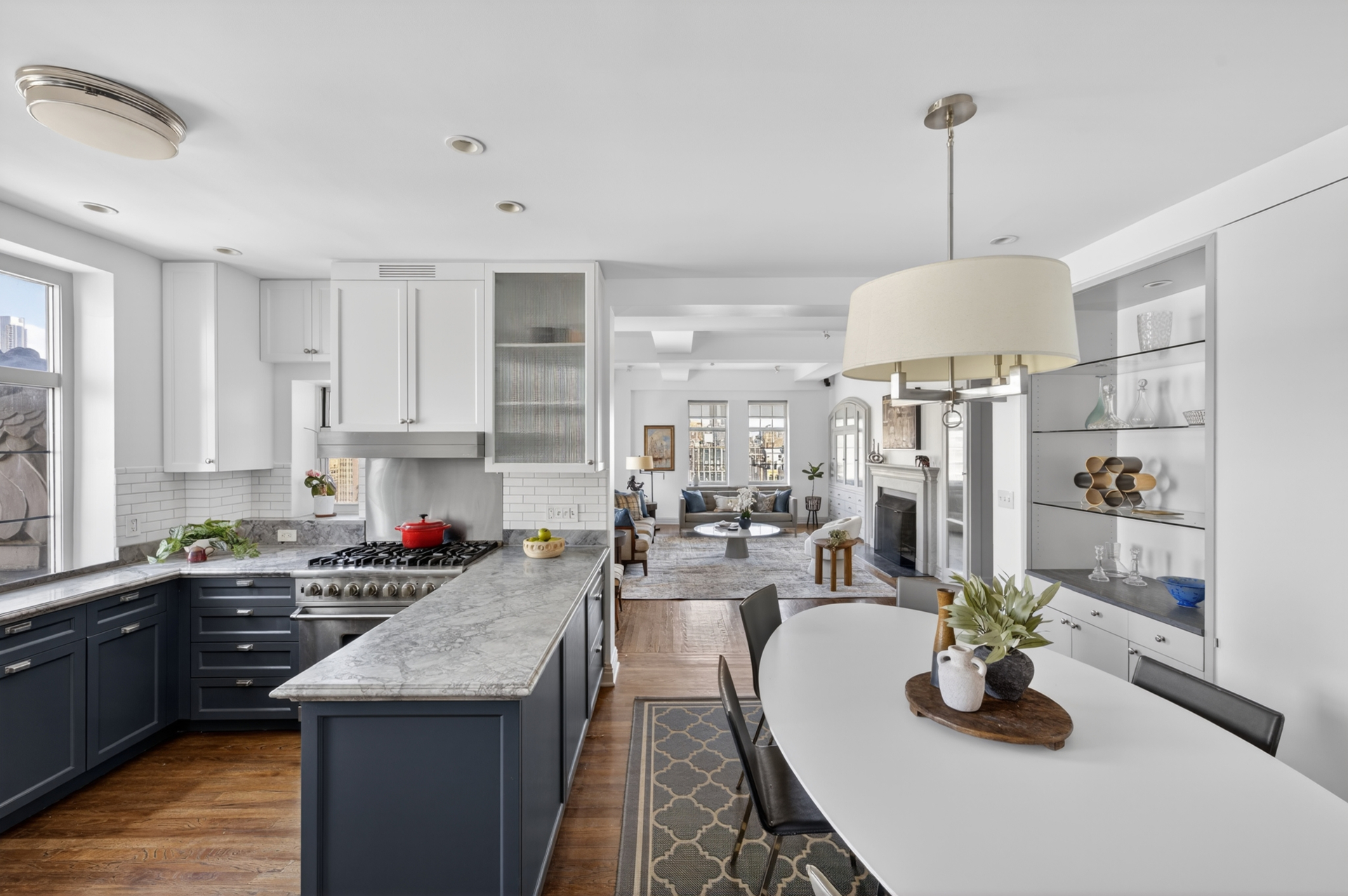 The layout unfolds with intention and grace. Four expansive bedrooms and four full baths provide a level of comfort and privacy more often associated with a townhouse than a cooperative. Each room feels anchored, substantial, and serene. The entertaining spaces invite both large gatherings and quiet evenings, grounded by the warmth of the fireplace and elevated by the rhythm of light moving across the walls. This is a home that does not rush you. It allows you to settle in, to breathe, to stay.