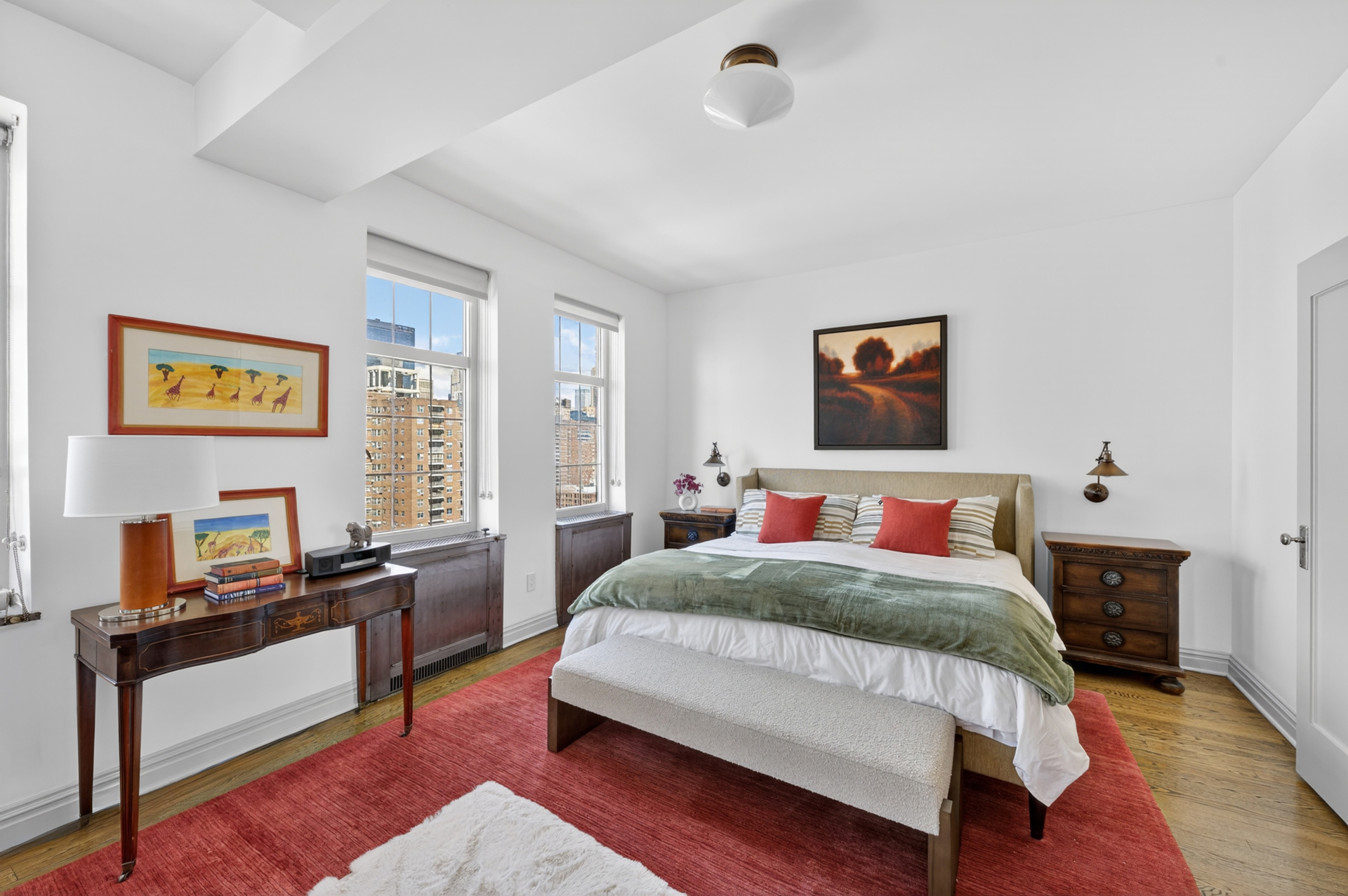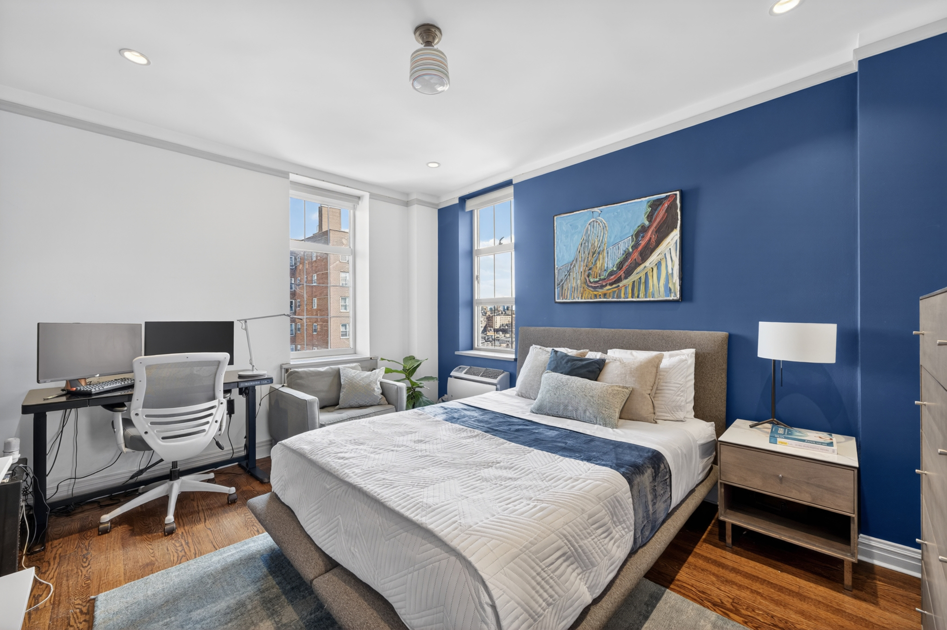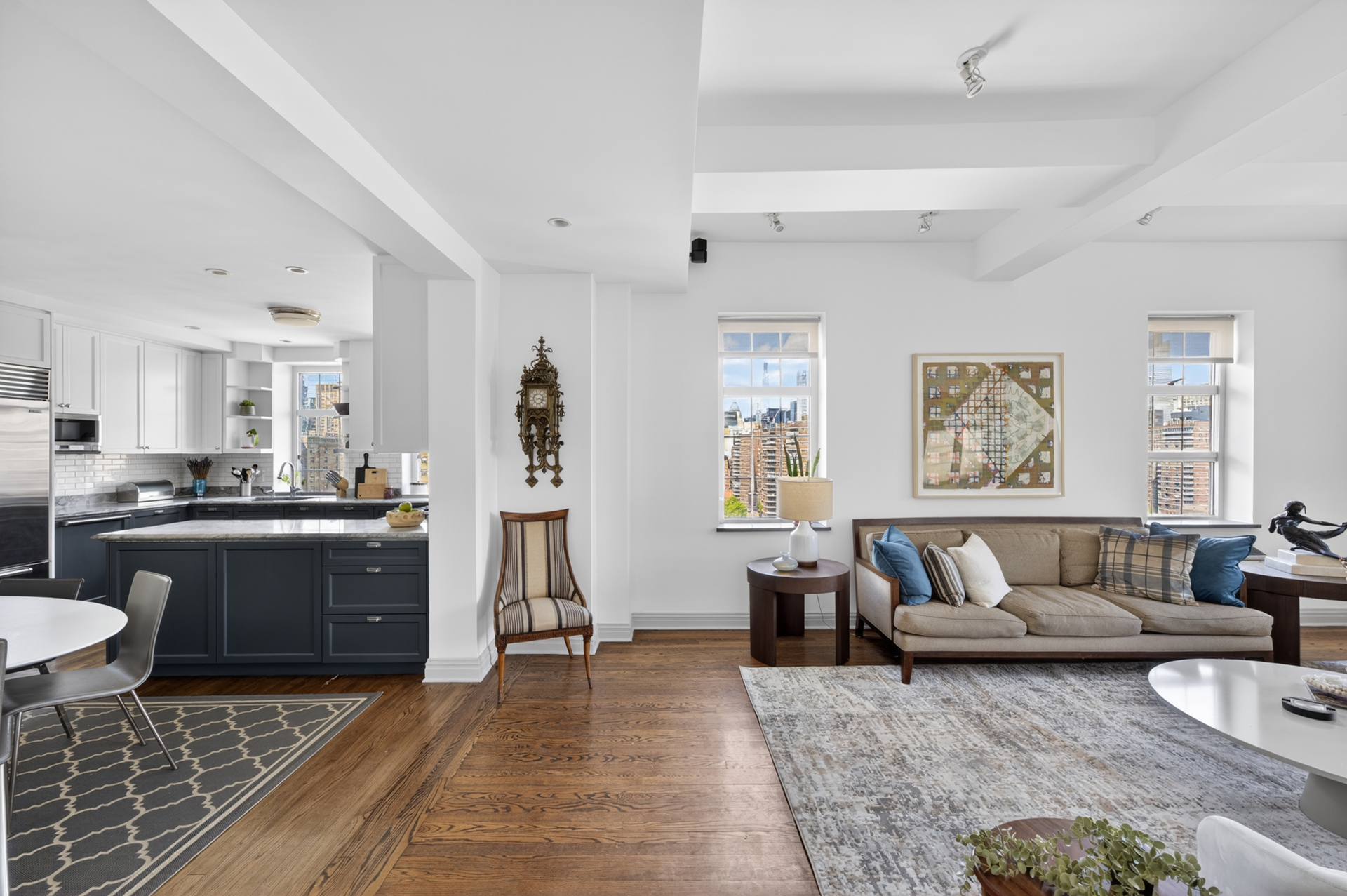 There are homes that come to market once in a generation within the storied walls of London Terrace, where prewar craftsmanship meets a scale and presence rarely seen today. From the moment you enter, the apartment reveals itself with quiet authority: soaring beamed ceilings, amazing light, a working wood burning fireplace, and a sense of proportion that feels both grand and deeply livable. Light pours through oversized windows, tracing the architectural details that define the residence and framing open, cinematic views that shift with the day.