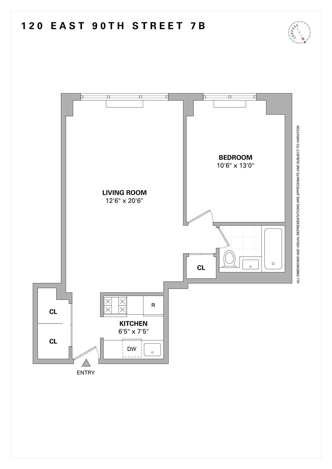 The expansive living room easily accommodates separate living and dining areas, creating an ideal space for everyday living or entertaining. Hardwood floors run throughout the apartment, complemented by through-the-wall heating and cooling.