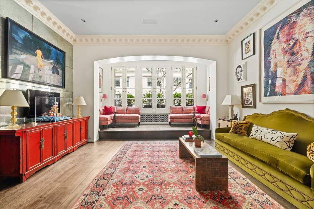 The dramatic Parlor Level serves as the heart of the home with a 70 foot long Living Room and dramatic 11.5 foot ceilings with arched details, period moldings and extraordinary volume rarely found in Townhouses of this scale. This level offers a grand Living Room with a Wood-Burning Fireplace and a Wet Bar. The dramatic Loggia opens to the Terrace all ideal for elegant entertaining.