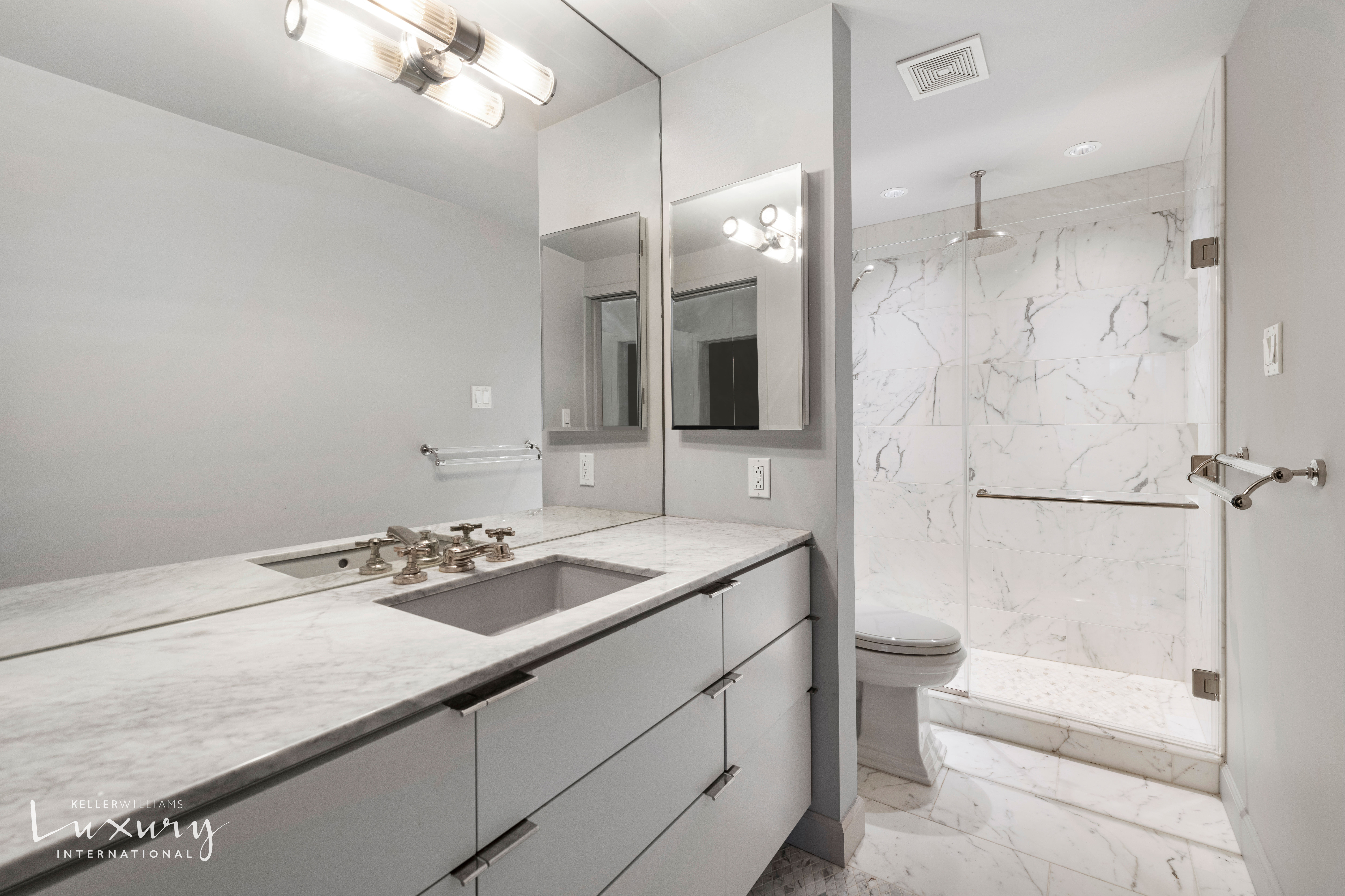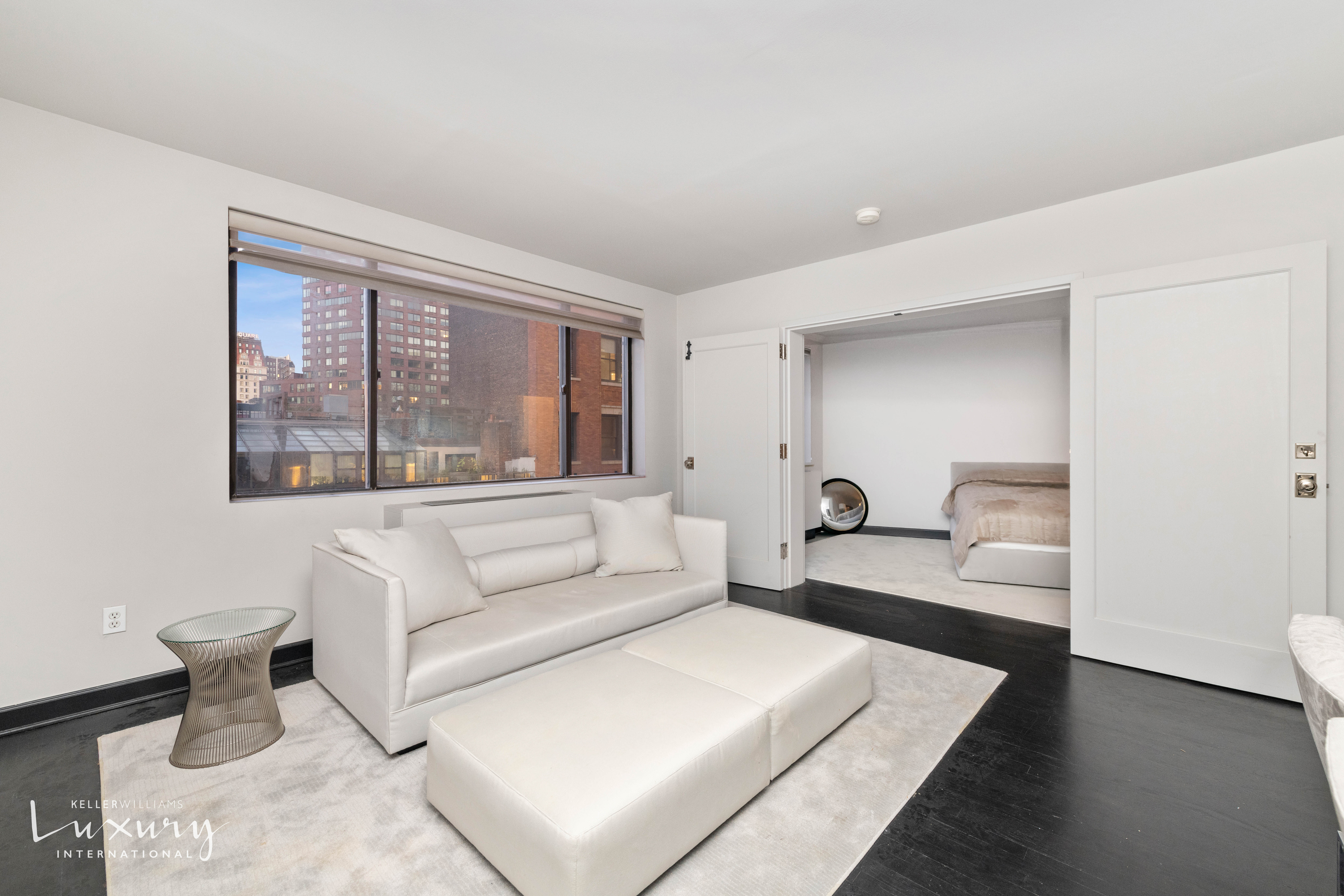 This spacious renovated one bedroom, one and one-half bathroom apartment in the lovely Parc Village Condominium was decorated by renowned designer Ryan Korban. One enters the apartment into a gracious foyer leading to an elegant floor plan. Following is a sleek open kitchen featuring countertops created with a full slab of Italian black nero marquina marble, black lacquered cabinets and stainless steel appliances. The substantial living and dining area overlook a charming residential street with beautiful building facades and open sky. Double doors separate the living area from the sizable bedroom which includes a large marble en-suite bathroom and a massive closet. Rich hardwood flooring flows throughout the apartment. Discreetly placed off the entry is a powder room which holds a combined washer/dryer. A large closet in the foyer provides additional storage space. Please Note: There is a $695.85 monthly assessment fee until March 31, 2029. The Parc Village Condominium is a boutique building located in Greenwich Village. The elevator building has a live-in super, 24-hour doorman, laundry facilities, a bike room, private storage room and common rooftop deck with views of the Empire State Building & Freedom Tower.